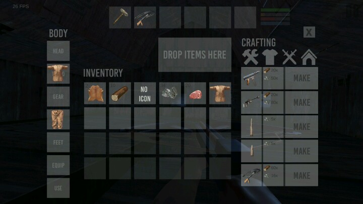 ③加上我们伐树得的木材和挖石头的石块就能制作物品了!点击“MAKE”即能制作!