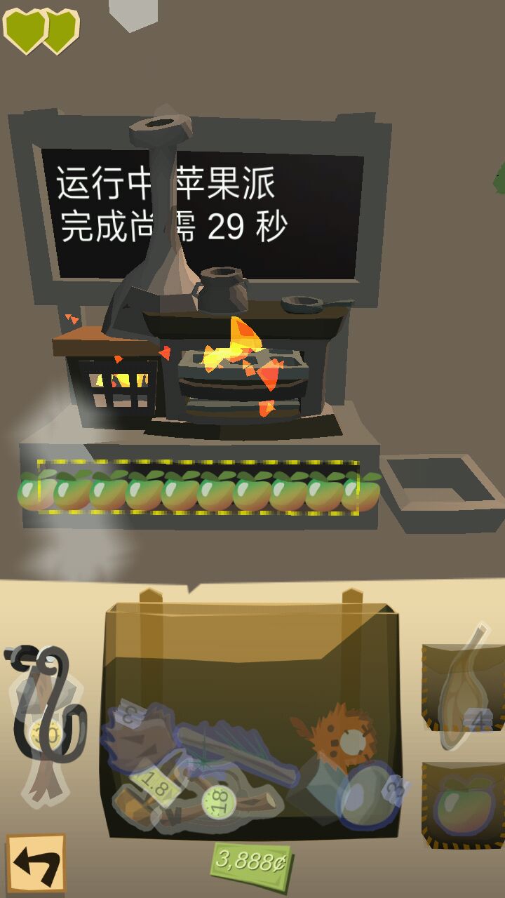 2.合成比单吃划算,一颗心分六格,一个苹果补两小格,合成苹果汁补一颗心,蘑菇补三小格,合成蘑菇串补两颗心