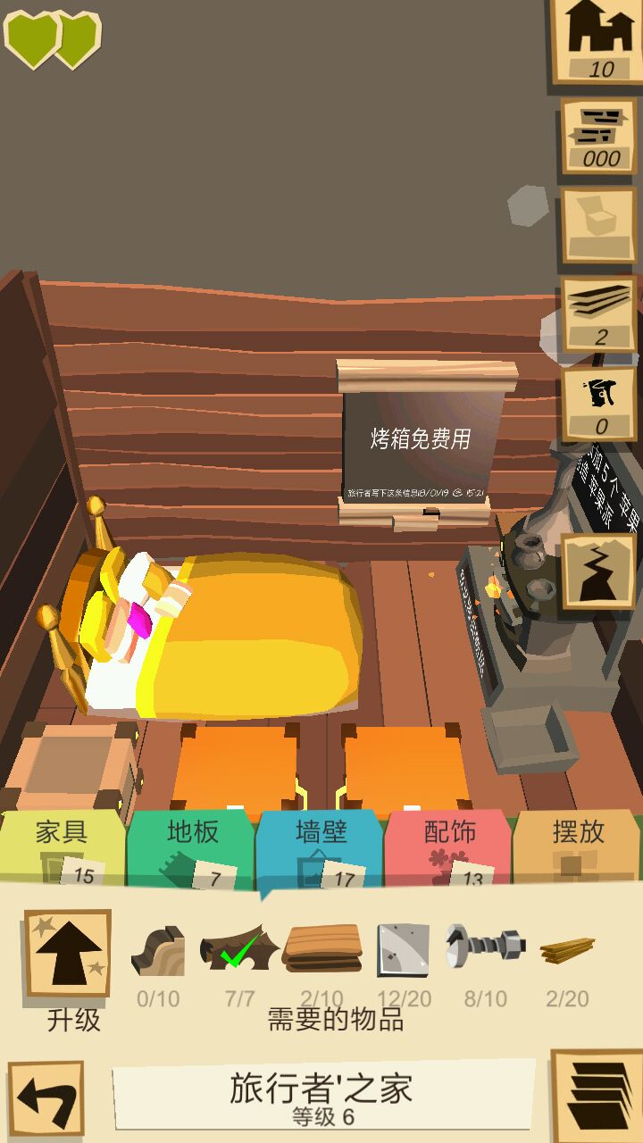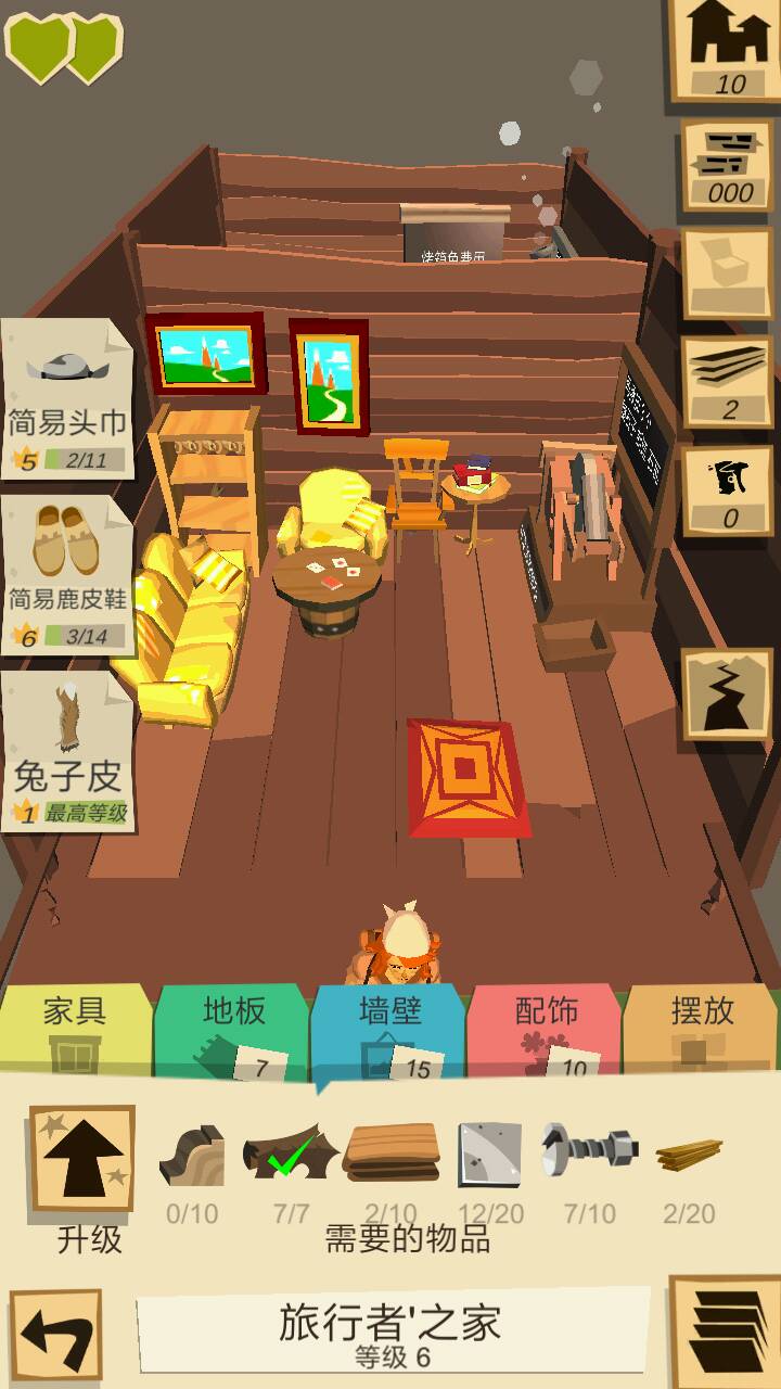 玩了好几天了,刚开始激情比较足,后期因为无法买房子,游戏内容基本在一直重复,扣一分,也望修复自己玩的一些小技巧:1.反正我是感觉吃的最重要,所以基本买卖看到食物就买,对面就一个人的时候等食物快到销毁区再买,比较便宜。2.合成比单吃划算,一颗心分六格,一个苹果补两小格,合成苹果汁补一颗心,蘑菇补三小格,合成蘑菇串补两颗心3.路上饿死倒地的时候,npc会蹦出来,这时候你看到后面有其他玩家就先等他走,不然他抢你东西,等没人再点npc开始回血,还没回满又有人要来的时候,还可以吃包里或者掉出来的食物,因为我经常是以为可以撑到火堆,不想浪费食物,结果倒火堆面前了4.当走到一堆树或者一群兔子松鼠的时候,没有工具或者不想浪费耐久,可以等后面来的人来砍树打兔子,然后你就可以跟他抢比手速或者等他走了捡剩的(反正是ai,因为刷图的时候每次他们剩的都一样)也适合刷需要材料的任务5.任务物品是装备的或者稀有材料的,自己做太浪费了,可以靠浣熊或者回低等级区刷第一名,那里其他玩家(ai)比较穷,你随便卖个破装备就能拿第一,一般奖励任务物品或装备或5级材料(ps.有个包要两个像破衣服的合成,我就拿第一奖了两个,还被人捡了那东西怎么得啊)新手可以楼下提问,虽然我也不是大神,但这游戏刚出我就开始玩了,现在主要等汉化,虽然大致看得懂,果然还是母语最舒服补充:1.船票钱不够,可以靠做东西卖刷钱,我基本不做鸟和玩具那种,大部分都加一个毛线球就可以做装备,价格是他们的两三倍,而且装备大家会以高价抢,玩具就等着进销毁区吧。(装备等级刷起来,做出来的耐久更高,自己用也好)2.目前感觉最划算的是羽毛帽(所有帽子都比衣服什么的值钱多了)蓝色羽毛可以回标志里有它的区域捡,遍地都是,然后打几只兔子捡兔毛,羽毛帽好像是四级400块!一个玩具才一百多!而且自己也可以戴!