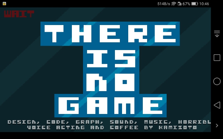 THERE IS NO GAME 一看就知道是骗人的!所以我就懒得听他瞎BB,我口语也不好,听不懂嘿!﹋o﹋虽然这种互动性很强的语音对话很不错,然而并没有什么卵用!╮(╯▽╰)╭虽然也有小小的提示不管……