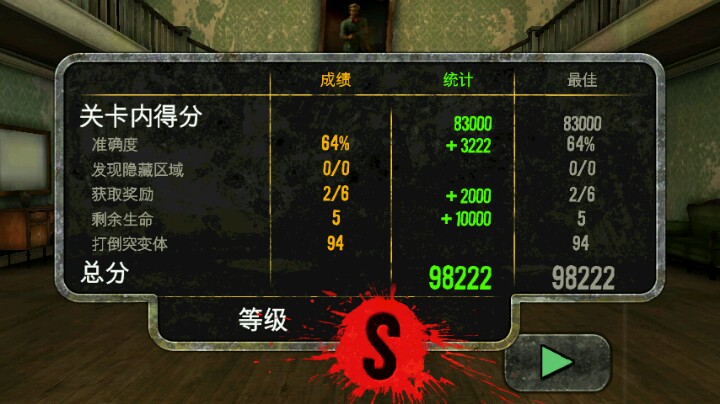 可能这种游戏早已跟不上如今诸多fps横行的时代,但是我始终相信——越老的才是越经典的!第一人称视角略有遗憾,枪械没有出现在屏幕中!而玩家只需移动屏幕上的那个准心即可!顶多就是换弹的时候能看到枪械!这算是本游戏的一个缺点吧!不能自由移动算是把这个游戏推向低谷的原因之一吧!加上还要钱……(楼楼有完整版链接哦!)以上可算是这个游戏可圈可点的毛病!不过经典为何称之为经典?不仅仅是它漫画风的表现形式,其实这个游戏最耀眼的是响遍全场的bgm,喜剧类的音效搭上血腥的僵尸射击,却一点都没有感到不协调,反而感到很搞笑!这游戏里面的枪械还有射击特效一类的,在那个年代,真心神游!射击游戏来说,很不错了!没有一丝辅助射击,打击感不错,飘血给力!连镜头晃动都弄出来了!感人!∩_∩还有完整的故事情节,虽说是关卡模式,但是故事还是一个很完整,很有意思的发展!还有游戏在细节上的处理,真心好赞,挺到位的!不论是僵尸冲破窗户玻璃四溅的效果,还是爆头喷血的效果,以及僵尸扔飞刀被打落的效果,还有门的破坏效果,真心弄得很用心!Ծ ̮ Ծ富含多元素的僵尸题材游戏,真心头一回!还有诸多人物可选哦!很不错的,很考玩家反应力的半自动射击游戏!还是喜剧味道的僵尸游戏哦!特别推荐大家玩玩!