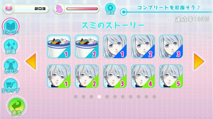 其实这个游戏是日语废也可以通玩,如果冲着颜值去玩,打发时间是很不错的。大概就是用几个词组在一起,正确的话可以造出来某样生活用品,然后加他的好感,满了就去觉醒,解锁新形象。那些蓝孩纸还是很可爱的♪(´ ▽`).。o♡♪关于BP,就是这里的游戏币,可以用来买觉醒钥匙和吃的,吃的加好感,BP可以点点点得到,五个封顶;解锁的人物的Q版会出现在屏幕上,出现感叹号去点有20BP♪关于组词造物,用三个词,每次花费20BP,额(⊙o⊙)…我全都是乱猜的,我摸出来的规律就是点气泡最大的三个♪关于好感,一个是买吃的,吃的加的好感有三种,讨厌一般和喜欢吧,喜欢的话屏幕上会出现很多爱心;另一种就是触摸( • ̀ω•́ )✧,你懂的,但有时间限制,用完了会慢慢恢复的;而且加到一定的好感会有小剧情,虽然在我眼里像天书通通跳过…♪关于造食物,把所有人物觉醒后就可以组词造食物了,这个我不建议尝试,(尤其是日语废)也省不了多少BP,直接去商店买就行♪关于觉醒钥匙,我觉得超坑爹的,每买一把下一把就涨价了!一个人物可以觉醒两次,觉醒了第二次之后好感度就加的慢了,建议投食为主,不然屏幕都给我戳燃了♪关于小功能,有个小功能可以重现蓝孩纸的表情和动作♪关于隐藏人物,初始屏幕会有个灰色石像,不要去鸟他,等把所有人物解锁并且觉醒好感度满值的时候,就可以加石像的好感度了,还能觉醒♪关于剧情选择,反正第一次我随便选的第一个,后面的结局是可以全部打出来的希望可以帮到大家(๑`灬´๑)这里放几张我打出来的图(第一张是觉醒后)
