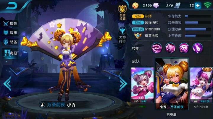 3技能-星华缭乱:群体伤害技能,并且在有兵线的情况下也会先攻击敌方英雄,技能伤害比较高,团中释放可以很容易触发被动提升自身移动速度。建议开团战时先发动3技能,团站抢人头的利器,加速后注意移位,以免被卷入中央,卷入后敌方战士刺客的高攻击技能放出,很容易死亡。