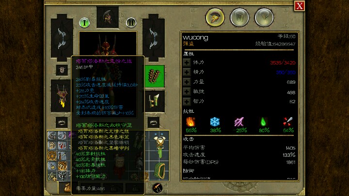重新开坑了以后,在选择专精这方面也是考虑了很久,最后终于是决定玩一次人气最高的混合职业-征服者;征服者也就是战士和防御的结合版本,开始对这个角色不以为然,本来想随便玩玩就删除角色重新开个破法者来玩玩的(死灵专精加战士专精)。结果八级在希腊地图上的第一个传奇boss独眼巨人就把我震惊了,这特么开外挂了吧?站撸传奇boss完全无压力啊!估计独眼巨人的内心是崩溃的....结果个人也摸索出了征服者的一套完美打法,主加双持武器方面的四个选项还有战争旗帜;防御方面的话加点战争号角还有盾牌攻击能力和被动回血,在刷几把有生命偷取能力和淬毒的武器出来,身上装四五十个血瓶子,也尽量仔细搜刮一些蓝绿装备出来;遇到boss的时候先丢一个战争旗帜给自己来一层buff,然后吹个战争号角把对方眩晕,然后猛烈输出,没血了就给自己磕一个血药....简直完美啊魂淡,希腊地图的第一个泰肯也就是这样站撸过去的,而且不知道为什么玩征服者检宝贝的运气好到爆棚了,刚到埃及地图身上就已经六七件绿装四件蓝装。。。没玩过征服者的小伙伴们自己快去试一试吧