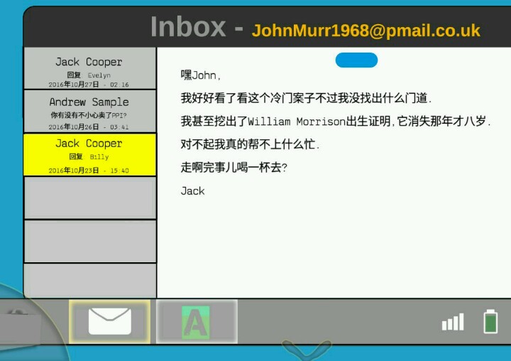 点击桌子,点击书,写着“邮箱日期和密码在usb”,拍照。