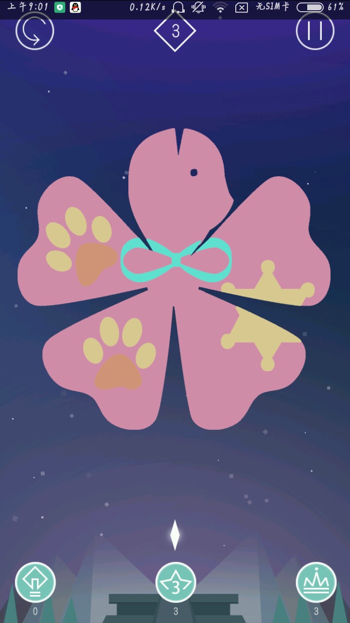 第二关(第一关系统教程)先点蓝色,再点粉色,使粉色也变成蓝色,再点黄爪子,再点蓝色,就过关了哦