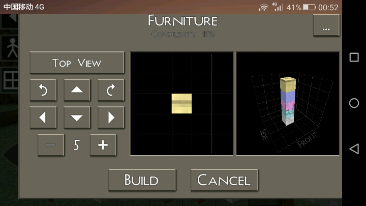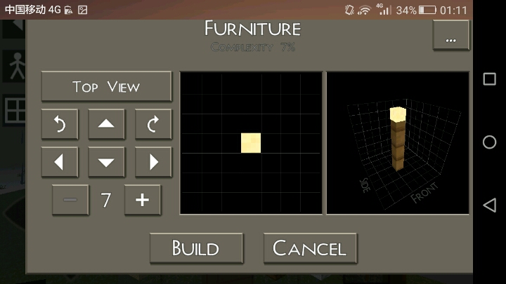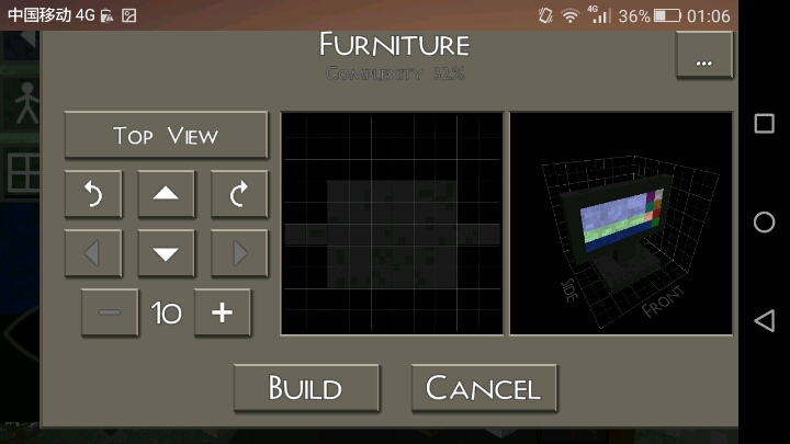 top view那个健调整视角,中间6个健调整位置,下面两个健调整大小,右上的...起名字(可以不起),build制作,cancel返回