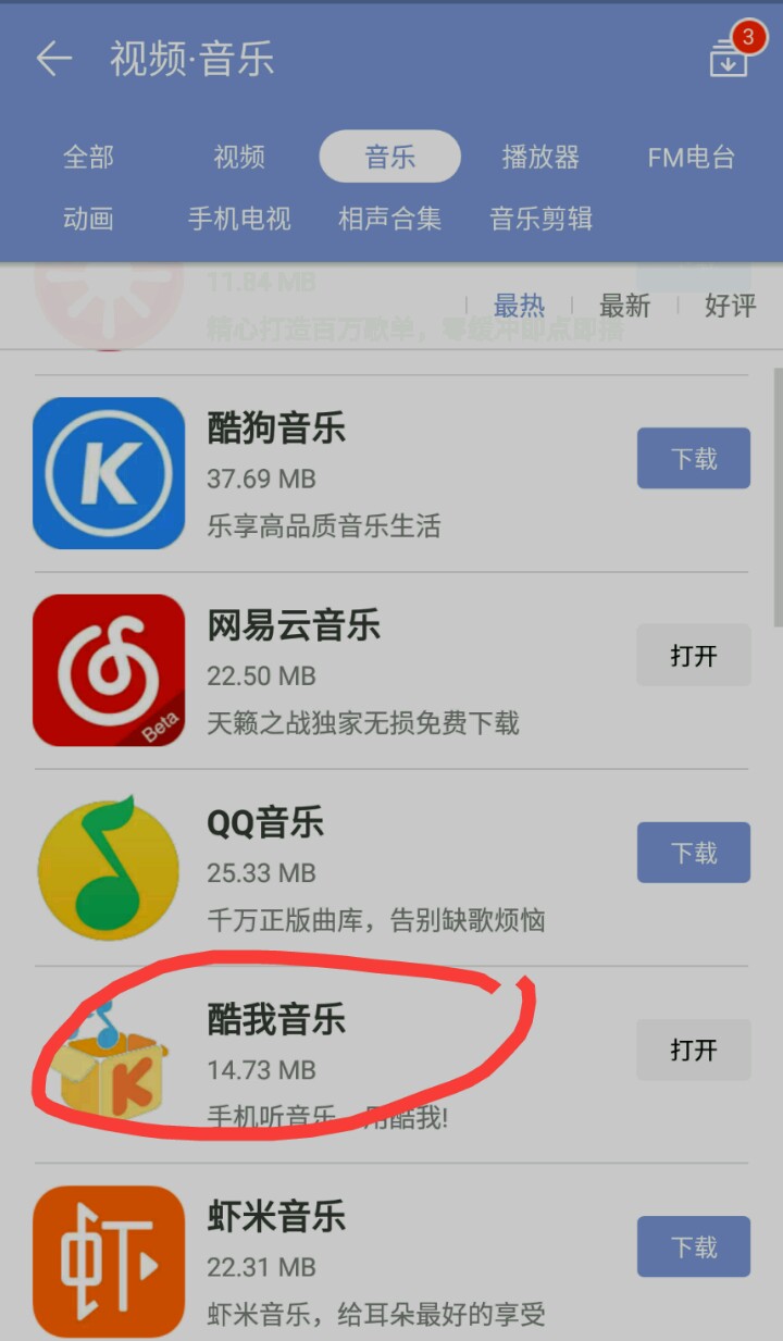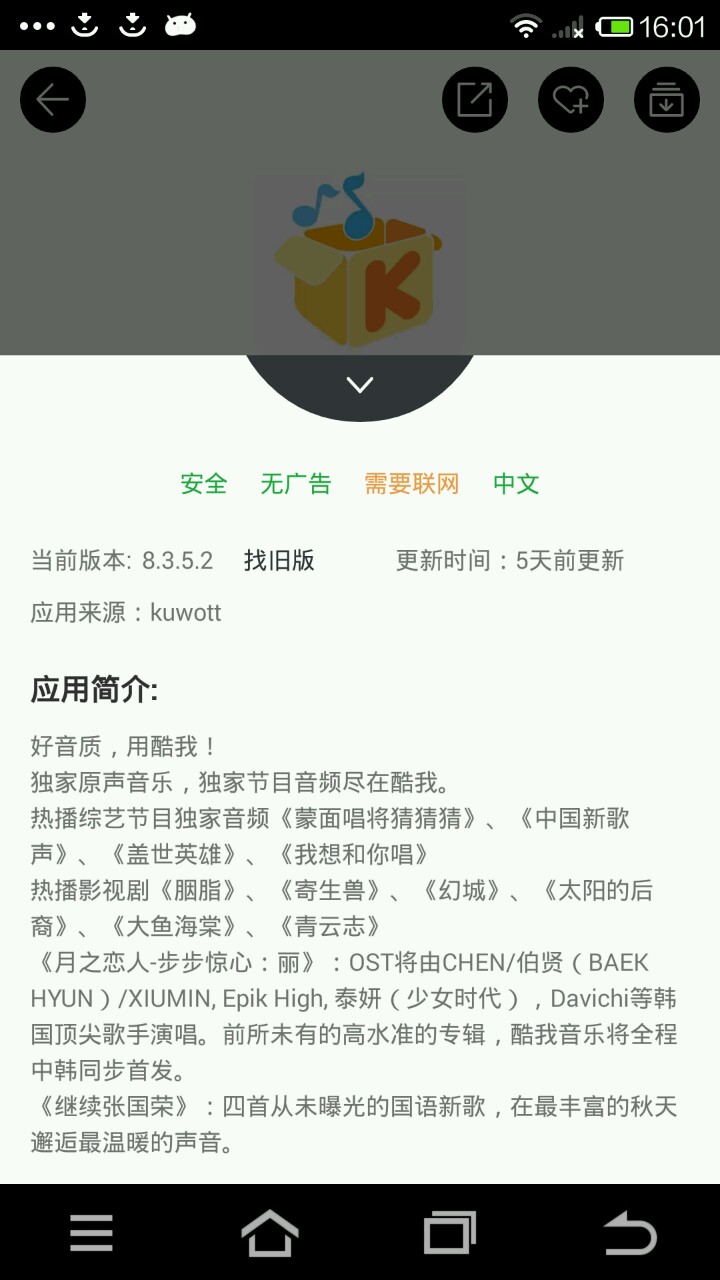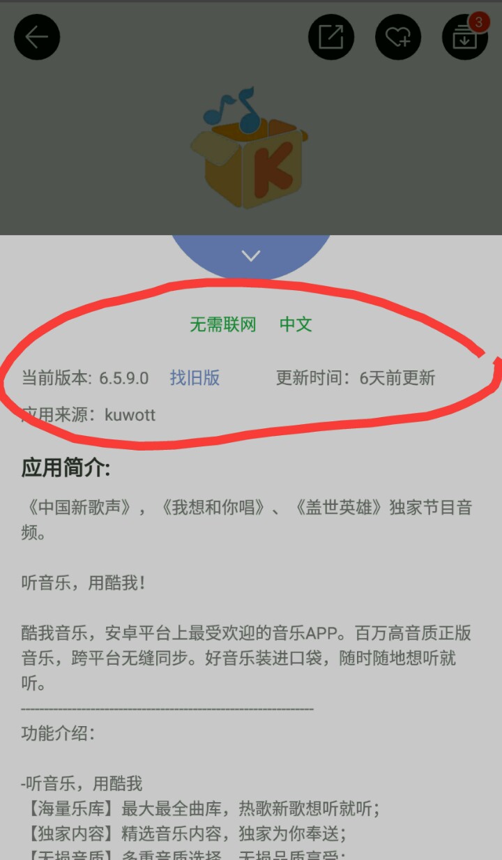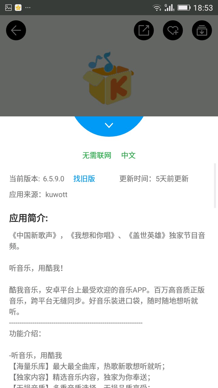 应用分类里的酷我音乐还是非常古老的版本!才6.x现在早都8.x了!