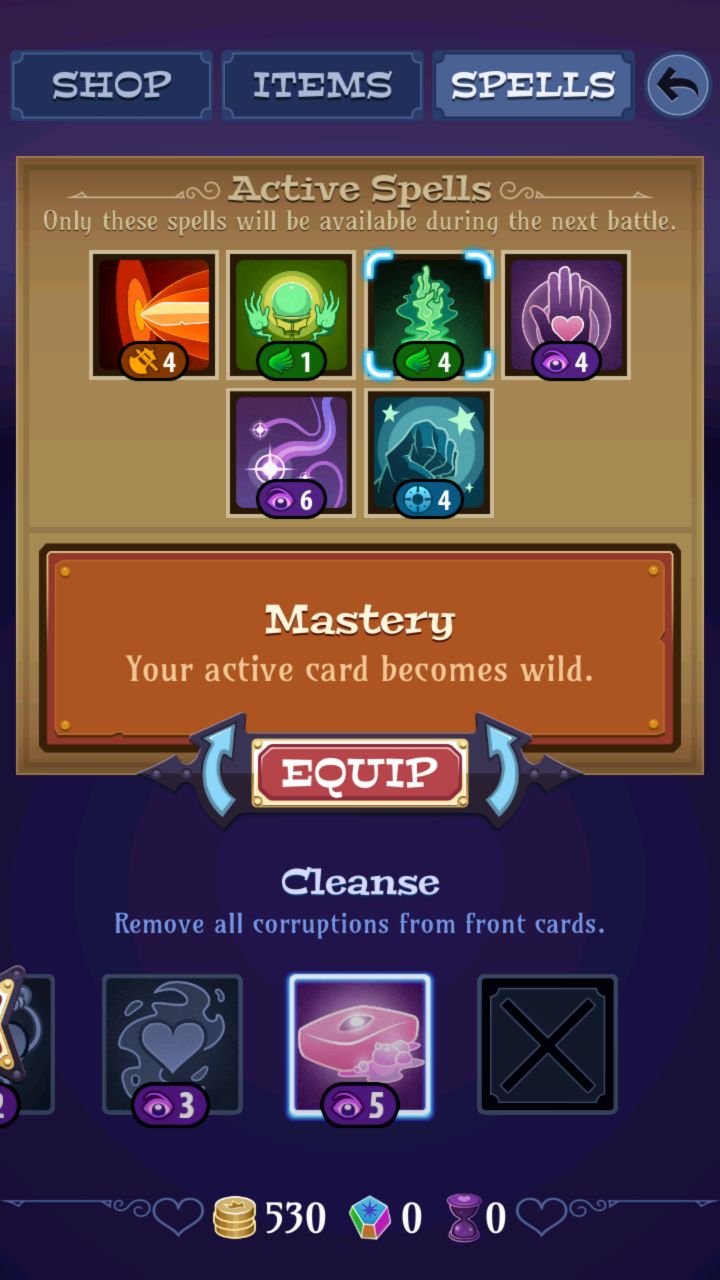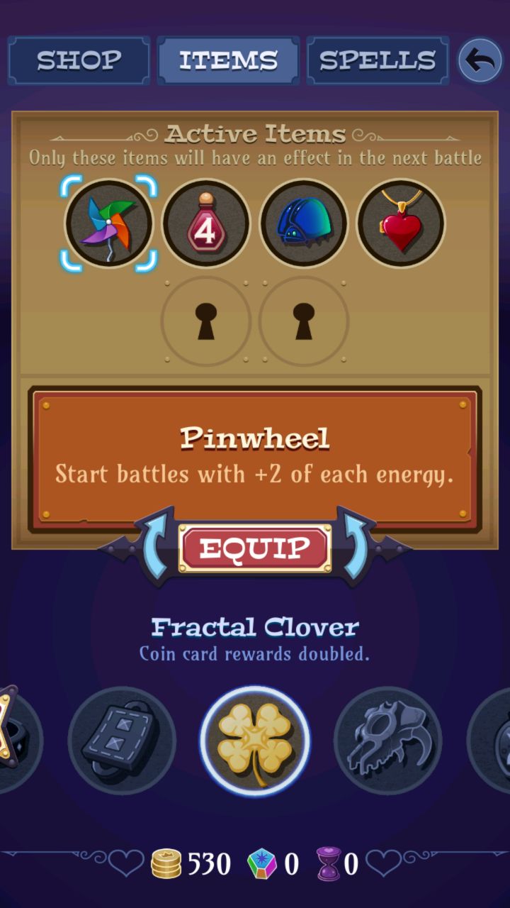 游戏还是有些问题的,就是还是比较需要运气,有时一排顺序的牌就可以连续combo,技能来了钱也来了;有时则就是一长列牌,消一个又是要换好几次牌,中间再要被boss给眩晕那么几下,(・ิω・ิ)嘿嘿,就等着收点石头重来了吧。
