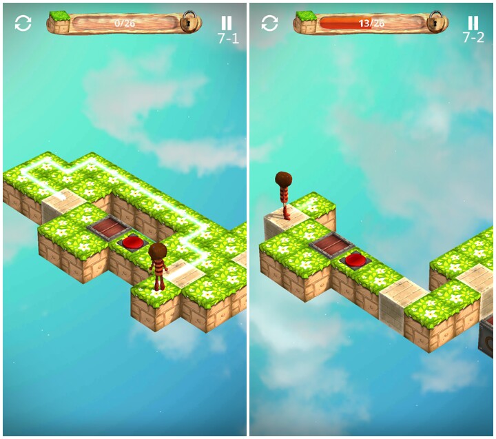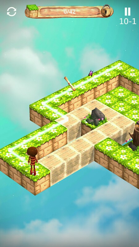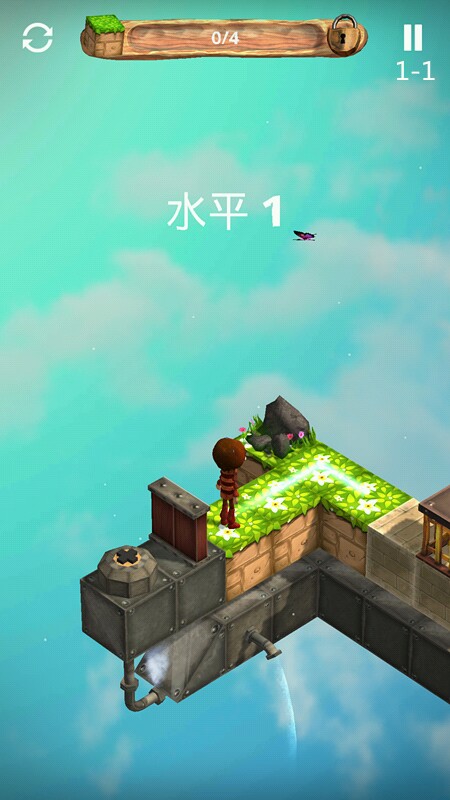 关卡1 教程关,滑动路径操控小木偶到达指定地点