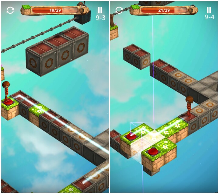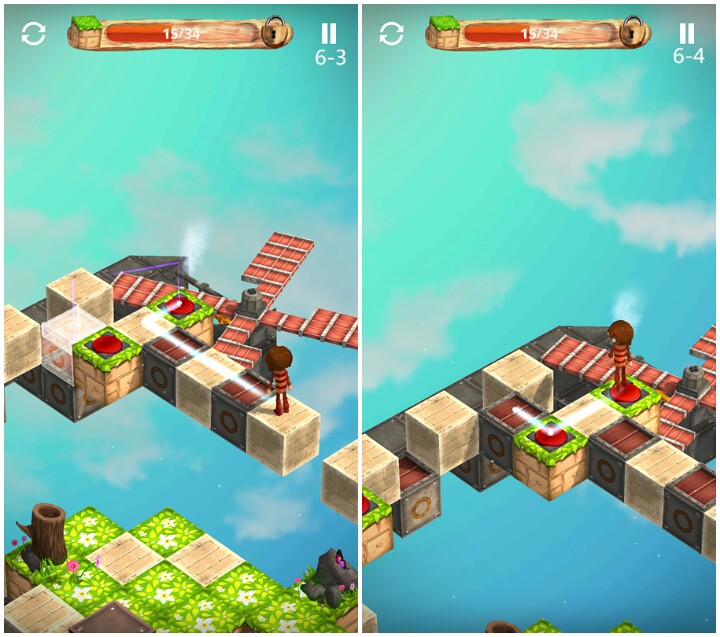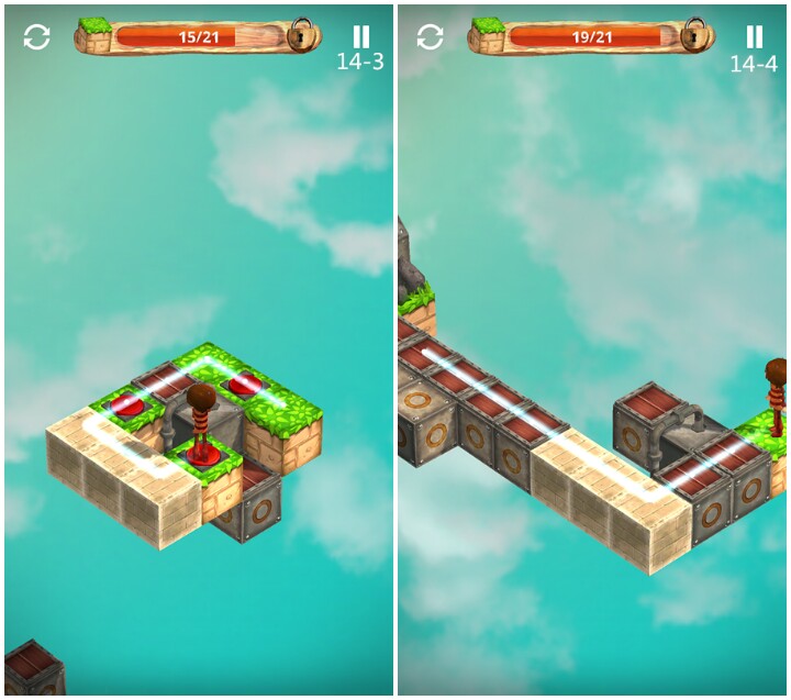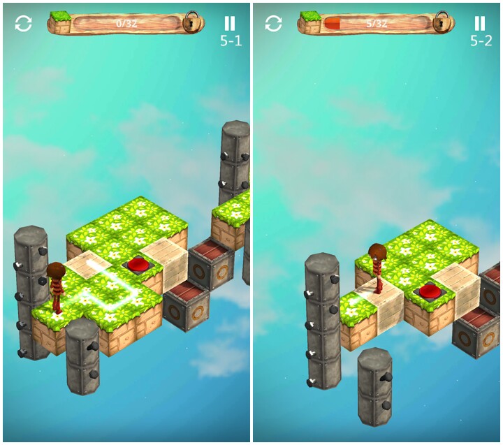 关卡3 教程关,木块与草地不同,可以踩踏无数次