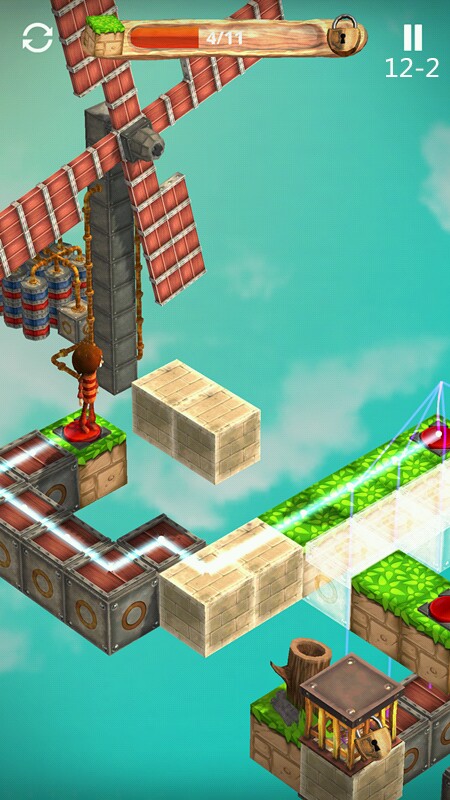 关卡12 触发机关让风车转动吹走挡路的热气球吧