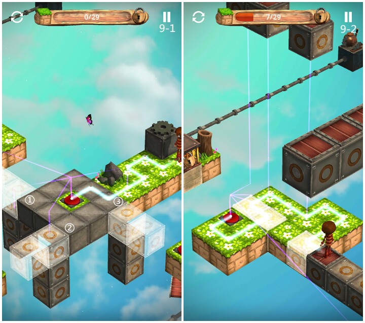 《被束缚的灵魂(Leashed Soul)》是款画风bgm等方面都不错的益智游戏。看到评论里的上墙帖说“游戏的玩法与《幽灵记忆》本质上是没有任何区别的”,我还是挺激动的——总算又有一款与视觉错觉有关的益智游戏~然而……不知道是不是我对《幽灵记忆》的本质有误解,总之《被束缚的灵魂》完全没有与“视觉错觉”四个字挂钩的地方……不提这个“本质”,《被束缚的灵魂》的某些玩法和《幽灵记忆》是有些像的,比如踩机关构路径,再比如……抱歉,好像《被束缚的灵魂》基本只有那种玩法……但是游戏所表达的保护大自然的理念是很好的,而且玩游戏还能长知识~比如樱树居然能活百年……但是在展厅我却还没解锁樱树……这是为什么呢?因为樱树要玩35、40两关收集卷轴来解锁,而我卡在了第30关……然而这并不是我想破头都没想出怎么通关的缘故——我不知道是我个人还是游戏的因素——我换了3个手机前后试了十多次还是有段地方不能走……明明都第30关了,明明都已经快通关了,居然碰上bug这种事……所以这次攻略也只到第30关~又说了些有的没的呢~攻略楼下开始奉上~