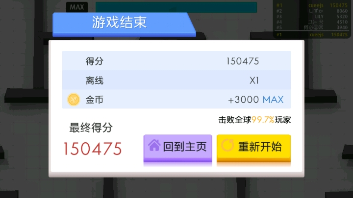 之前本来都玩到了81345分,结果90000多分的时候居然卡黑屏了QwQ最终没能突破100000大关。。。