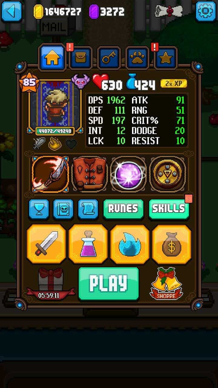 这是装备和魔法,我现在的暴击率是71%,配上暴击回蓝的那个饰品,基本无限蓝,那个盾的魔法带上基本不掉血,出了我这套装,想走多远走多远