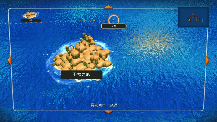 首先,从赫米特的小岛(家/出生地)〔图1〕出发,进入航海图,先去一个叫提克拉的城镇〔图2〕,在那里接了一个海边洞穴里[寻找鸡血石]那么一个任务!