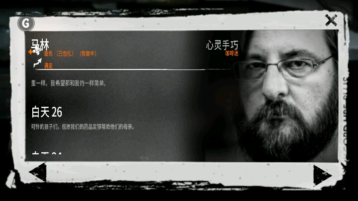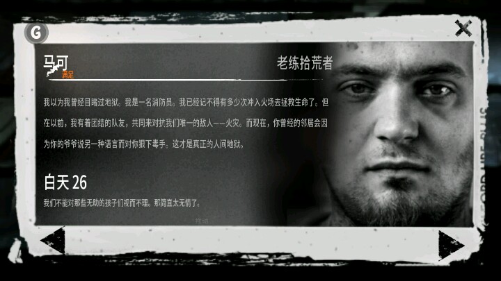 这一款游戏,在我已知的游戏里,给我震撼是最大的,这个游戏考验善心不是一星半点,比如在超市里发生了,人渣士兵强奸少女那一幕,起码百分之88以上的人是选着拍死那个人渣,还有一幕,白天两个小孩为生病母亲找药,我没有迟疑,我直接给了他们,虽然药可贵,但是他依旧是药,是拿来救人的。啰嗦一下,不是我的世界要出教育版吗,我觉得这一款游戏也可以作为教育游戏。