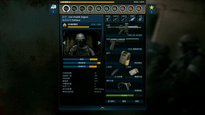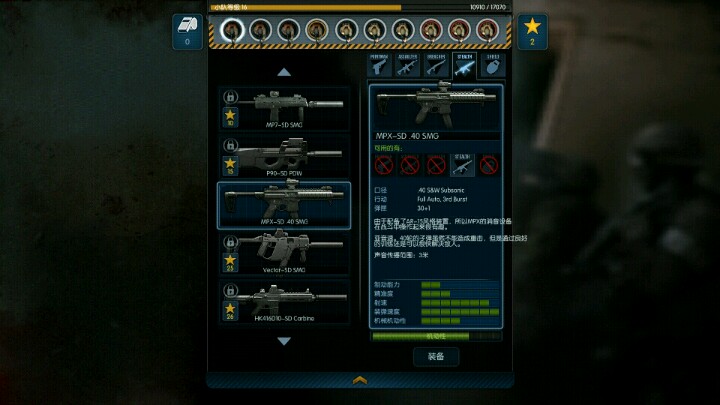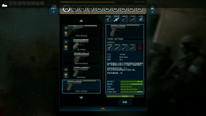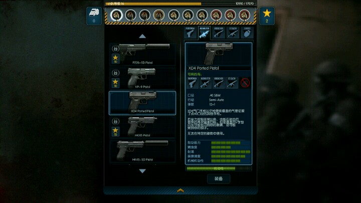 首先,初期我们需要把手枪的技能点满,尽管介绍里手枪是侦查员,但是在狭小的房间里,手枪是最有用的武器,给你们看看我自己装备的两把手枪。突击队员的话,XD4和VR9都是比较好的武器,消音手枪,这把和那把更贵的性能一样,但更便宜,所以个人买的是这把,消音手枪适合配合冲锋枪。
