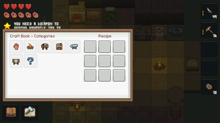游戏一开始点第二个选项,然后把左边四个项目调成D..... (图1) 解锁物品合成表还有开头的生存物品(它可以无限刷,点游戏齿轮图标第一个保存第二个退出,循环翻倍物品)。 游戏怪能自爆 又多 又难打 又容易死,所以要自保,在沙漠找椰子树 砍3个就够了(椰子叶做床)然后做稿子到石头堆里做庇护所 天黑前做工具台 用石头做石墙把自己围起来,深夜出怪立刻睡觉。 高级稿子挖高级矿 锄头挖深色泥土耕地种萝卜和小麦 然后就看着搞。