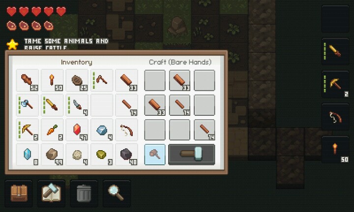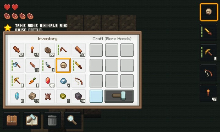 实用bug:扔出去(背包里的【垃圾桶】按钮)的工具,再捡回来【耐久度】会恢复到满。