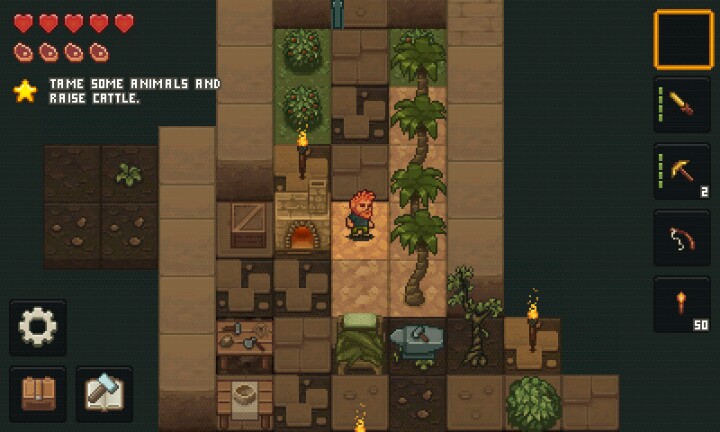 第一天,优先住进石头堆里(另一篇攻略贴有提到)。找一大片的石头,挖进去,掏空,挖穿的地方用【橙花】或【蓝花】堵上,怪物进不来。(花朵晚上会发光)