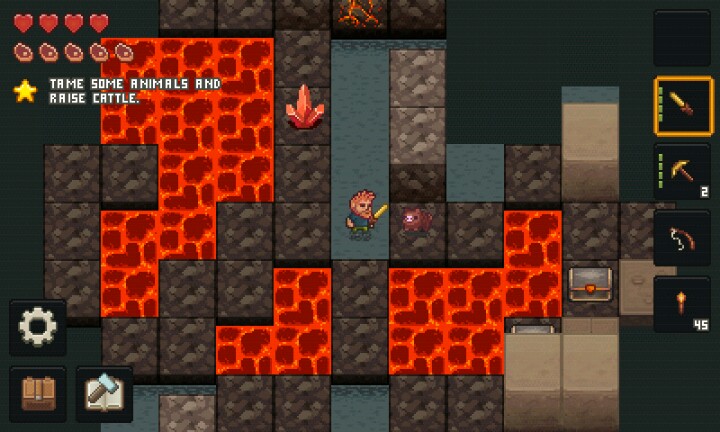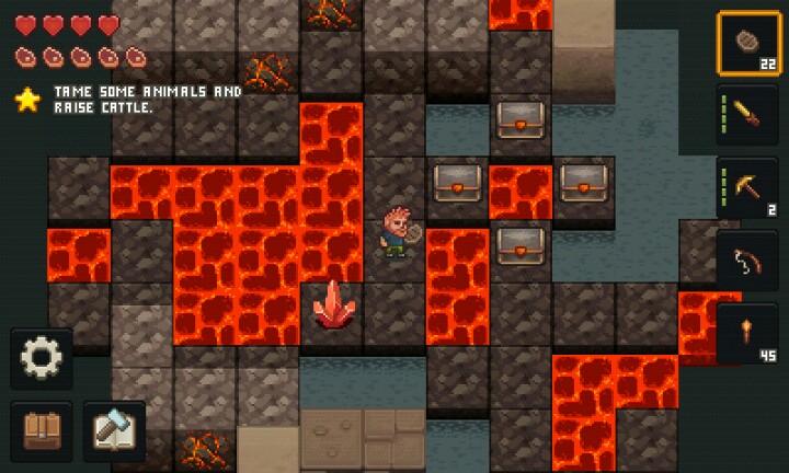 首先关于挖掘,只接点击想要挖掘的东西(树木,矿物等),点击时,可以挖掘的东西会闪【红光】,挖不了的会闪【蓝光】,使用工具时,挖掘挖不了的东西也会消耗【耐久度】