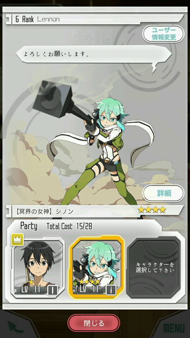 嘛,简单玩了一会,是个良心作(比某剑士强的多)虽然未汉化,不过玩起来难度不大。毕竟猜都能猜出来嘛。一打开会有提示需要获取谷歌服务,不过无视就行。然后就是开始界面啦,熟悉的林肯死大头。进去后先来个模拟战斗(不是我发的那个图啦)然后再下载点资源,花了一会时间才进去游戏界面。游戏界面和各大网游大差不差,左上是成就和商店(不能氪金,为中国玩家省钱)右上是活动(抽卡的那种,概率略坑)不过刚进入的话可以免费抽一次,虽然不是活动里的,我抽到的是4星诗乃(我要亚丝娜女神啊~要不西莉卡也行…)左下是聊天(和大厅交流之类的差不多)右下是菜单。最下面的分别是小镇(就是现在待的地方)组队,然后任务,家园,抽卡,还有锻造武器。(不能保证全对哦,错了不怪我)