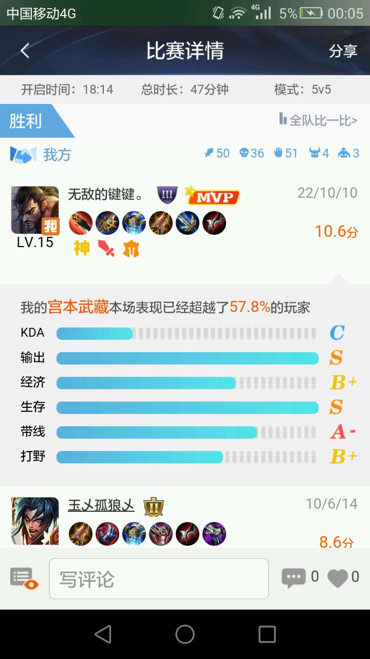 团战思路:宫本武藏属于切后排的英雄,在团战中要后手入团,先跳大招,(注意不要跳完大招就放一技能,要等敌方的控制要控到你的时候放一技能,说到底宫本还是很脆的)跳完大招,放完一技能,再用2技能进行秒杀。
