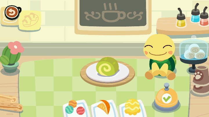 给客人端菜的时候没有他们之前点单的记录,但如果不对客人会摇头,反之点头。图有点玄妙,能看出来的。然后他们就吃去了。吃完喊你结账,一个个缓慢的掏硬币(等死我了)拿了钱涨经验,满了解锁新(升级)产品
