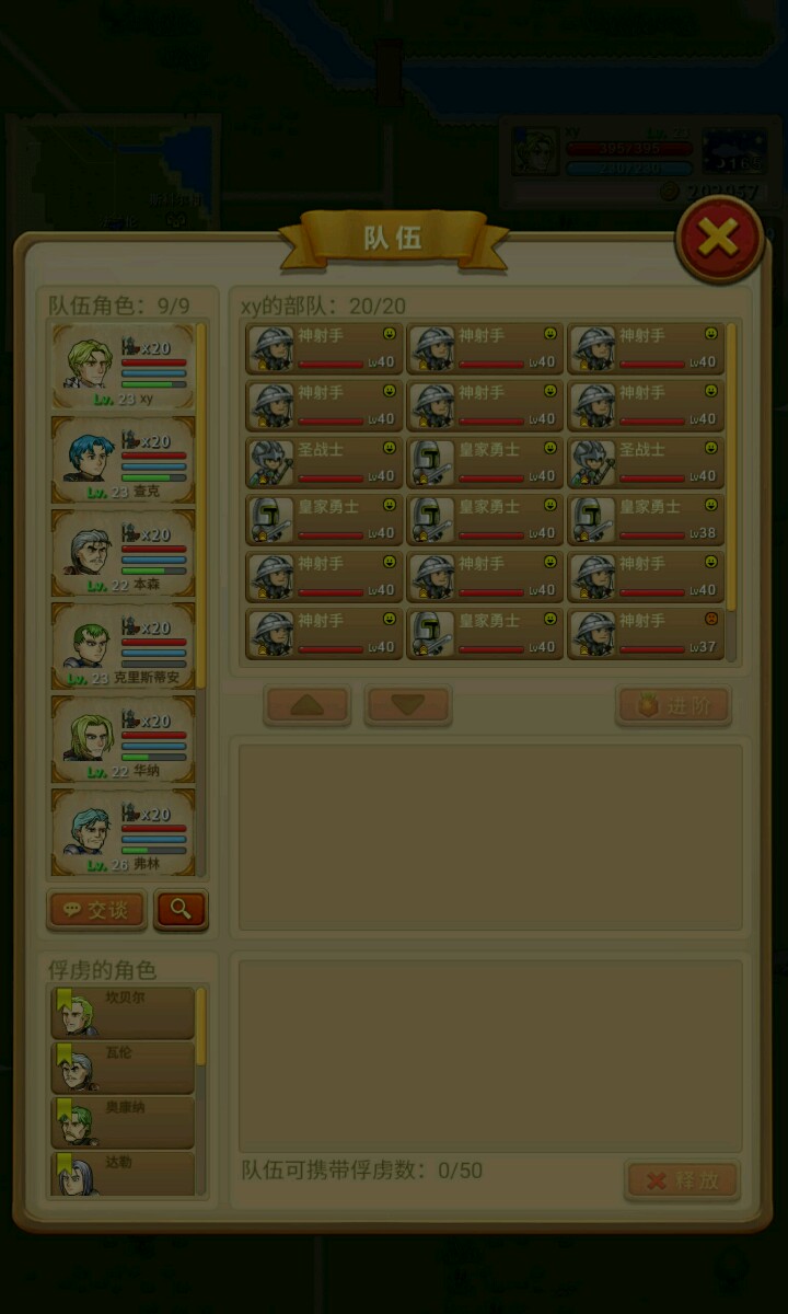 2、做完新手教程,首先分配一下兵力,集中一下兵力。(点下面的队伍然后点系统送你的那个角色,在点一下他手下的兵,再点下面的小三角形,把兵放入待选区,然后再点自己把兵分进去)