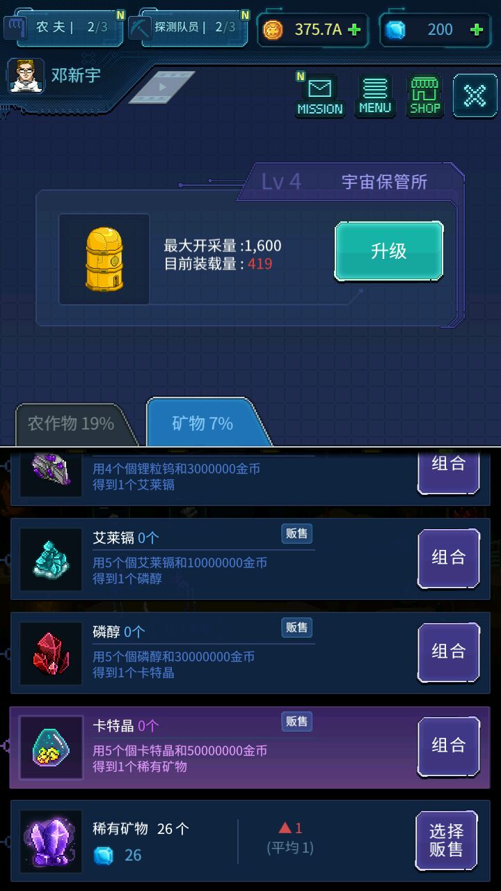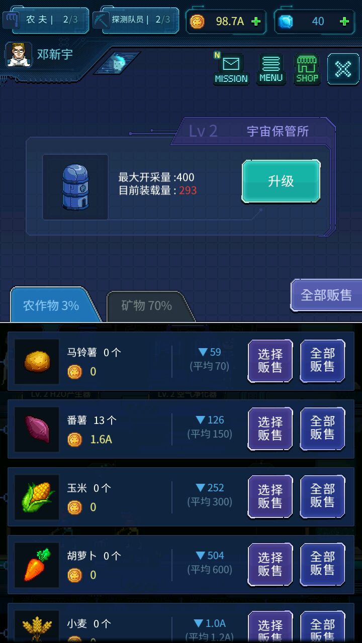 在外星生活,任务很简单,就是持久发展,刚开始玩我有点晕,因为是像素的。仓库满了,挖矿工和农民就不干活了,要把仓库东西卖出去,比较烦,因为要一直不停的卖卖卖。但都是这样过来的。他们生产速度很快,所以我就把所有东西都卖了。