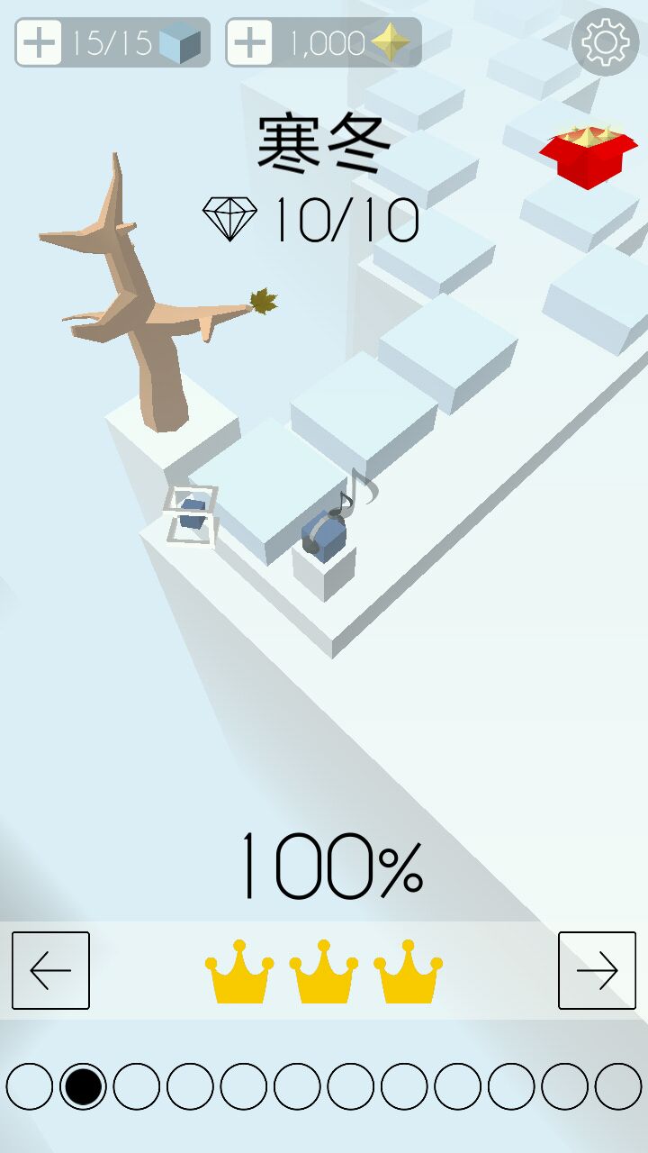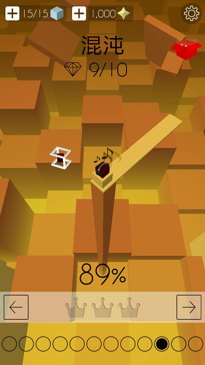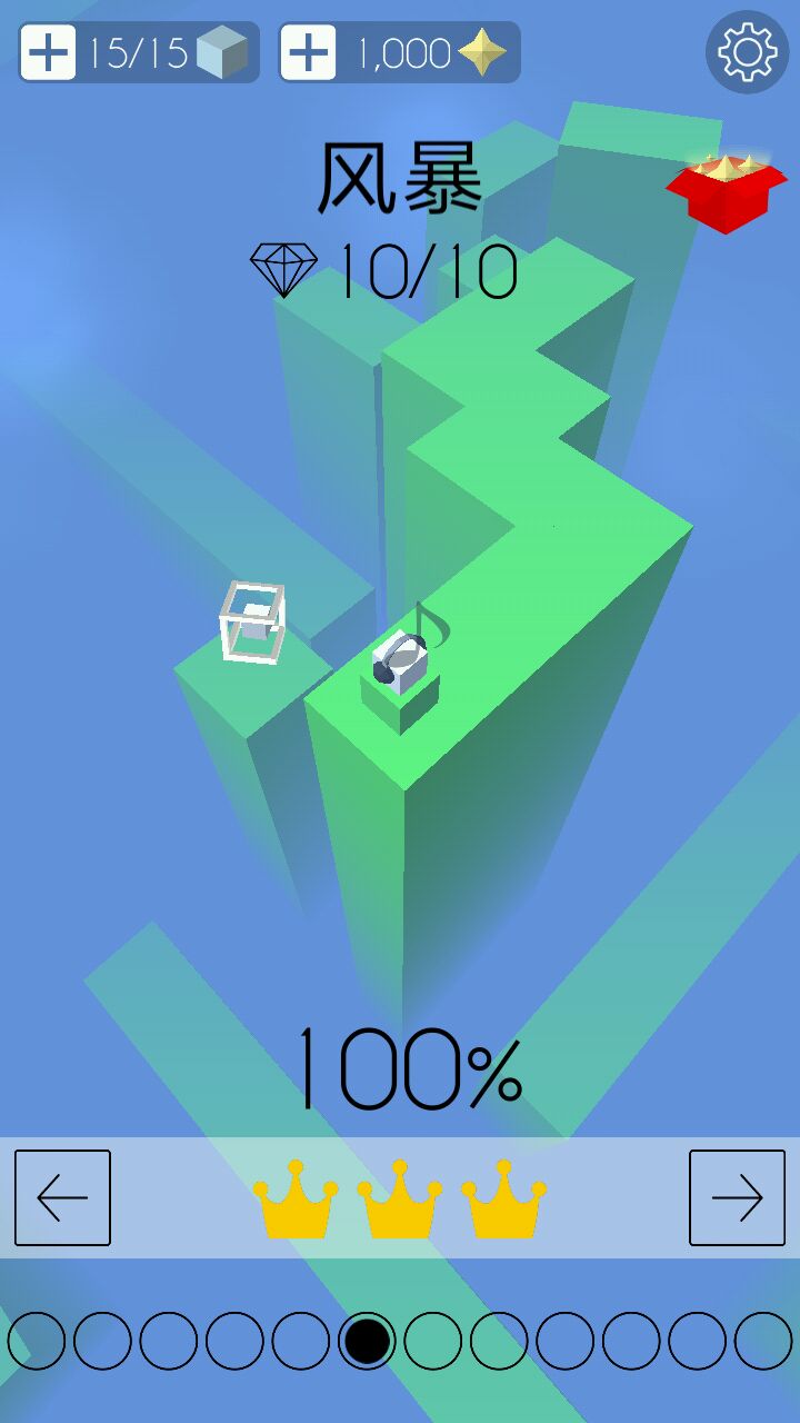 它每重来一次就会消耗一个立方块,左上角是立方块数,到0之后不用慌,等120s就能一瞬间全部恢复(15个),等不及的小伙伴可以选择看个小短片恢复或者氪金