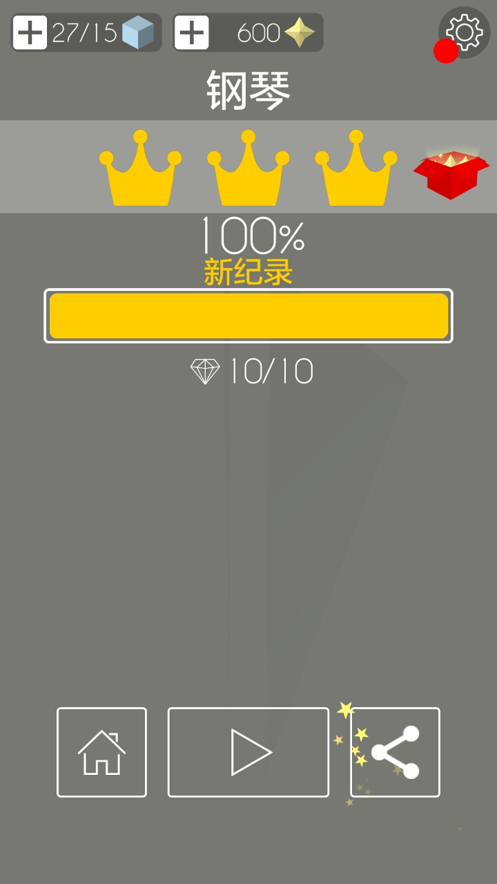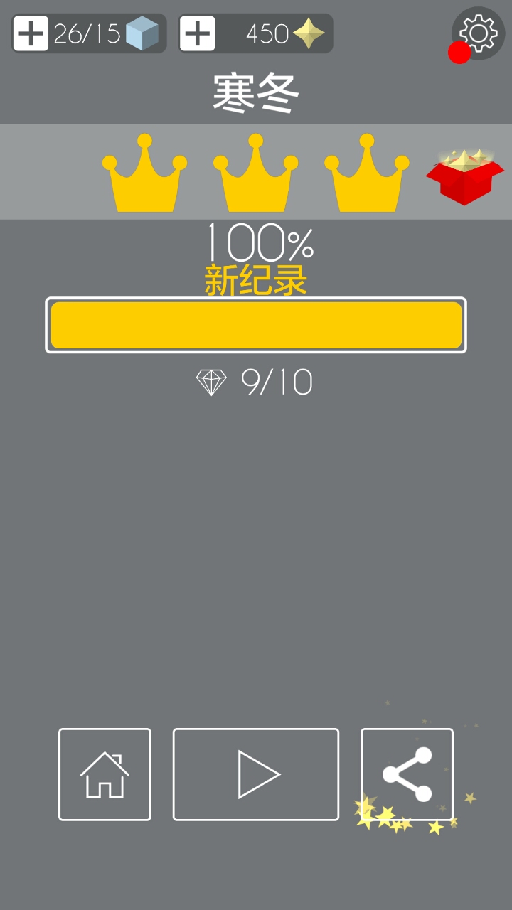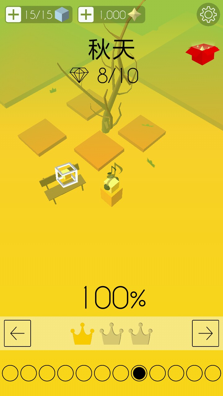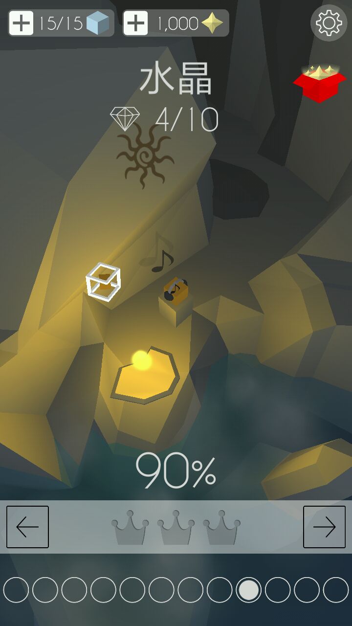 它每重来一次就会消耗一个立方块,左上角是立方块数,到0之后不用慌,等120s就能一瞬间全部恢复(15个),等不及的小伙伴可以选择看个小短片恢复或者氪金