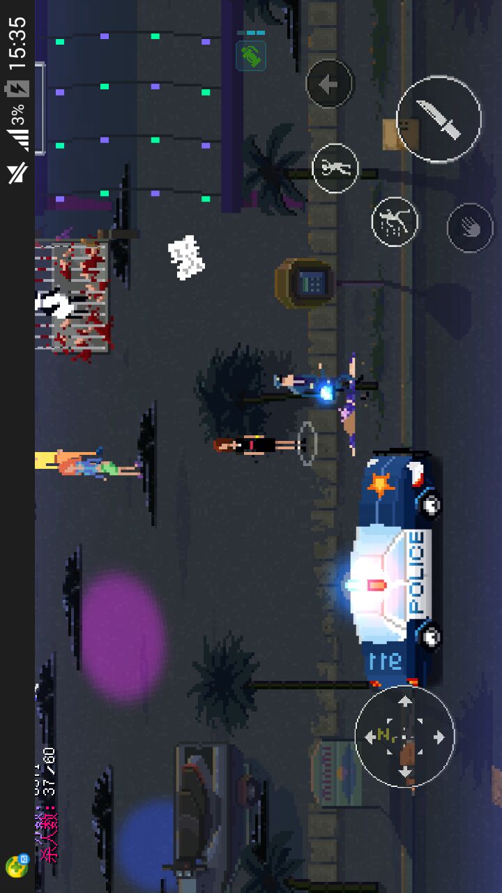 3.屠夫,图中第五个角色,解锁条件是在一关中连杀20人,公交车那关不算的,就是电话召唤的那个屠夫,可以使用屠杀技能,使用后屠夫将启动他的电锯狂砍,移动速度加快,碰到电锯的人就会被击杀