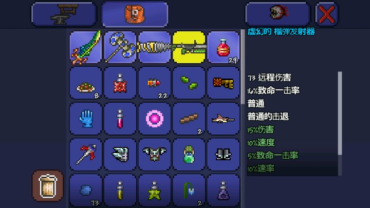 3。邪神大脑,伴随好多藤蔓一起出现,没打完藤蔓它是无敌状态,它是唯一会瞬移的boos,打完藤蔓,大脑裂开(可啪),这是可以对他造成伤害了,重要的是,它吃击退!所以用击退强的武器它近不了你的身