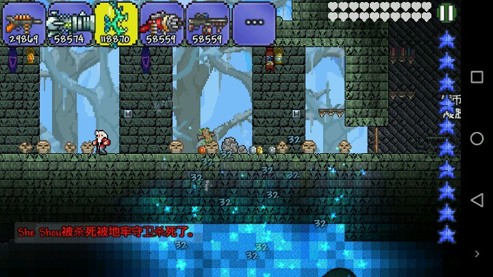 3。邪神大脑,伴随好多藤蔓一起出现,没打完藤蔓它是无敌状态,它是唯一会瞬移的boos,打完藤蔓,大脑裂开(可啪),这是可以对他造成伤害了,重要的是,它吃击退!所以用击退强的武器它近不了你的身
