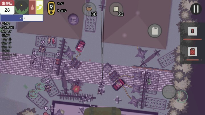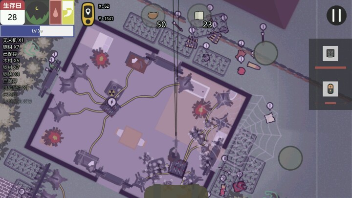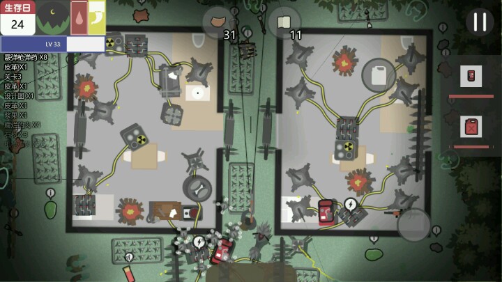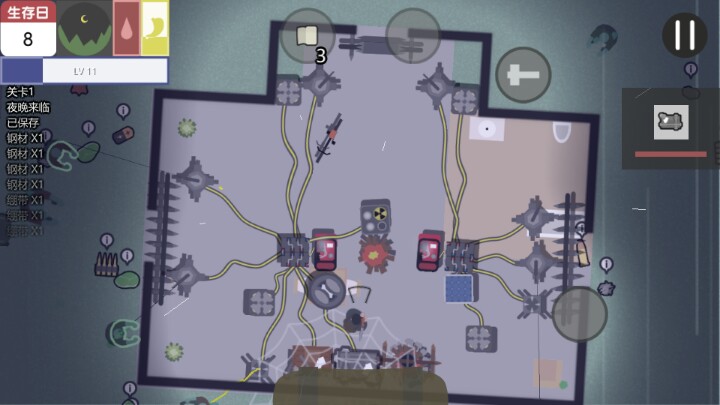 来,重新开档,游戏出来是白天,尽量多收集材料,比如图纸,铁,电路板,无人机,芯片这些看到必捡,因为相对不是那么好获得,食物在餐厅大房间有很多,每天都会刷新,不用担心食物短缺,晚上你可以找一间两道门的房间,建造工具台和围栏过渡,也可以造手电筒和自行车彻夜狂奔,5天晚上会有一波僵尸突围,僵尸群中会存在新种类僵尸,蟾蜍僵尸可以隔墙跳跃,带毒素伤害,蜘蛛僵尸会吐范围蛛网,减缓移动,还有撞击僵尸,直线冲撞,距离较远。两道门的房间前期过渡用好用,后期格局太小,僵尸数量日益增多容易被突破,后来拆除重新建造新房间,期间导致材料缺乏,旧房间又各种施舍不完善,电路中断,炮台瘫痪,又是一波按地摩擦…………此处省略…………饱受摧残的我依然觉得我还可以抢救一下,于是重新开档,我要成为自带圣光的男人,我要屠城!图片就是现在的档,一个四道门的房间,强迫症不能忍,建筑是反反复复拆了又建,建了又拆,只为能工工整整,有人能体会我的感受吗?浪费我好多材料。火堆占地大但耗材小,前期适用,强迫症不知道放哪里,所以前10天我都是打手电筒过日子,乌漆嘛黑的!房间建造在地图中间,资源比较丰富,两边大房子无限刷食物,前期我一直在寻找无人机材料所以没有重点放炮台(主要是脸好),无人机不耗电不耗子弹,贴身保护,大兄弟真是不要太好,前期我已经造出7/9架,生存能力有了保障,随后完善了房间设施,基本无压力,初期技能点我选择生产点满,有利于材料快速收集。地刺这个建筑有很大作用,减缓僵尸速度,利于炮台击杀,减少围栏消耗。蓄电池配四发电机我觉得足够了,两套就能带动房间所有电子建筑。