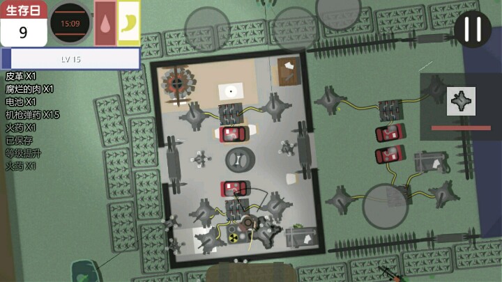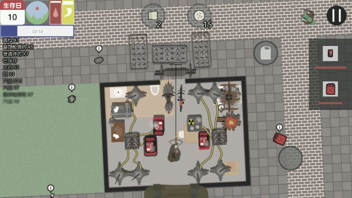 来,重新开档,游戏出来是白天,尽量多收集材料,比如图纸,铁,电路板,无人机,芯片这些看到必捡,因为相对不是那么好获得,食物在餐厅大房间有很多,每天都会刷新,不用担心食物短缺,晚上你可以找一间两道门的房间,建造工具台和围栏过渡,也可以造手电筒和自行车彻夜狂奔,5天晚上会有一波僵尸突围,僵尸群中会存在新种类僵尸,蟾蜍僵尸可以隔墙跳跃,带毒素伤害,蜘蛛僵尸会吐范围蛛网,减缓移动,还有撞击僵尸,直线冲撞,距离较远。两道门的房间前期过渡用好用,后期格局太小,僵尸数量日益增多容易被突破,后来拆除重新建造新房间,期间导致材料缺乏,旧房间又各种施舍不完善,电路中断,炮台瘫痪,又是一波按地摩擦…………此处省略…………饱受摧残的我依然觉得我还可以抢救一下,于是重新开档,我要成为自带圣光的男人,我要屠城!图片就是现在的档,一个四道门的房间,强迫症不能忍,建筑是反反复复拆了又建,建了又拆,只为能工工整整,有人能体会我的感受吗?浪费我好多材料。火堆占地大但耗材小,前期适用,强迫症不知道放哪里,所以前10天我都是打手电筒过日子,乌漆嘛黑的!房间建造在地图中间,资源比较丰富,两边大房子无限刷食物,前期我一直在寻找无人机材料所以没有重点放炮台(主要是脸好),无人机不耗电不耗子弹,贴身保护,大兄弟真是不要太好,前期我已经造出7/9架,生存能力有了保障,随后完善了房间设施,基本无压力,初期技能点我选择生产点满,有利于材料快速收集。地刺这个建筑有很大作用,减缓僵尸速度,利于炮台击杀,减少围栏消耗。蓄电池配四发电机我觉得足够了,两套就能带动房间所有电子建筑。