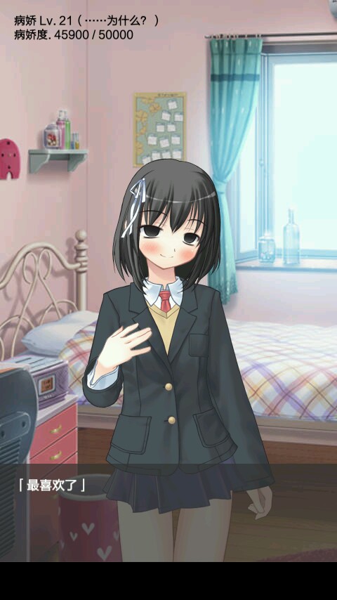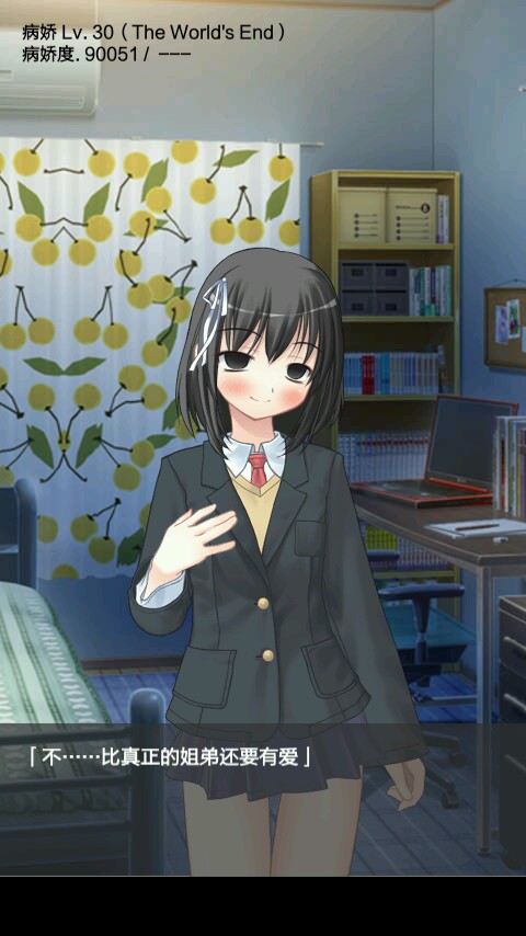 用了将近两个小时的时间,通过了此游戏~因为是病娇控( ˘•ω•˘ )所以两个小时都不是事,我来总体说一下这个游戏吧,个人认为这个游戏是养成类型的(ノ・ェ・)ノ。但游戏本身却很考验人的耐心,随着好感度不断的上升,想升下一级会变得越来越艰难。但苦有总有甜,随着姐姐的不断黑化,她的表情和语言都变得越来越奇怪。这也就是整个游戏当中的精华部分,这个游戏总共等级是三十级,当你升到30级以后 ,就意味着你通关了。(完)因为我的文平不好,所以我只能说这么点 ,实际行动还是靠你们自己吧!