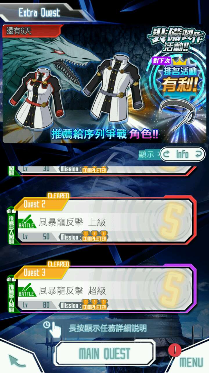 这次谈一下六天的排名任务,Boss风龙(忘名了请见谅)。风龙的第一个攻击为抓击可反弹开始后迅速接近风龙防御御反弹快速切换人物会造成高额伤害。风龙有两种吐息(一、水平吐息将头低下的连续吐息不要防御会被破防并晕眩最好闪开到头后脖子区域攻击。二、垂直吐息抬头从上向下吐息伤害高会被击飞可防御。)然后是滑翔无法反弹可防最好闪开。最后是风龙的大我称它风之.(好中二)风龙周围出玩大量风压被击中会被弹飞直接用技能可以抗过去可防御。还有扇翅膀用风把人物扇飞持续伤害但伤害低可防御最好用一个NPC在一边托着你去龙身后一直砍。(如有不正确的地方请各位指正。)
