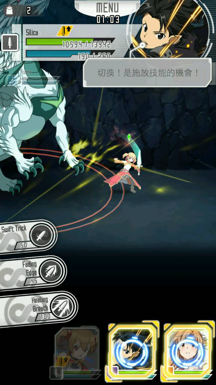 虽然是竖屏但单枋z也一样能完美操作并且活动也非常不错打通就送最高级的人物,但最大的亮点是游戏还原了动漫中的攻击反弹加CD(切换)在用当前人物将敌方攻击反弹时换成其他人物会使敌方元法防御并有可能被击倒。装备在活动中也能得到上等的装备(咱就是)打超级Boss绝对不能少了补师,否则很困难。四张图分别是队伍,首页,装备强化页和将[青眼恶魔]的攻击反弹后的情形(敌方陷入一段时间的僵直这段时间换人会自行使用最强技能强攻。如果距离较远则会使用直刺除法师,射手,弓箭手)在敌方攻击时会有红色危险区域注意闪避(最好是反弹丿。本人才玩了半月南可能会有错误希望大家谅解~o(〃'▽'〃)o。
