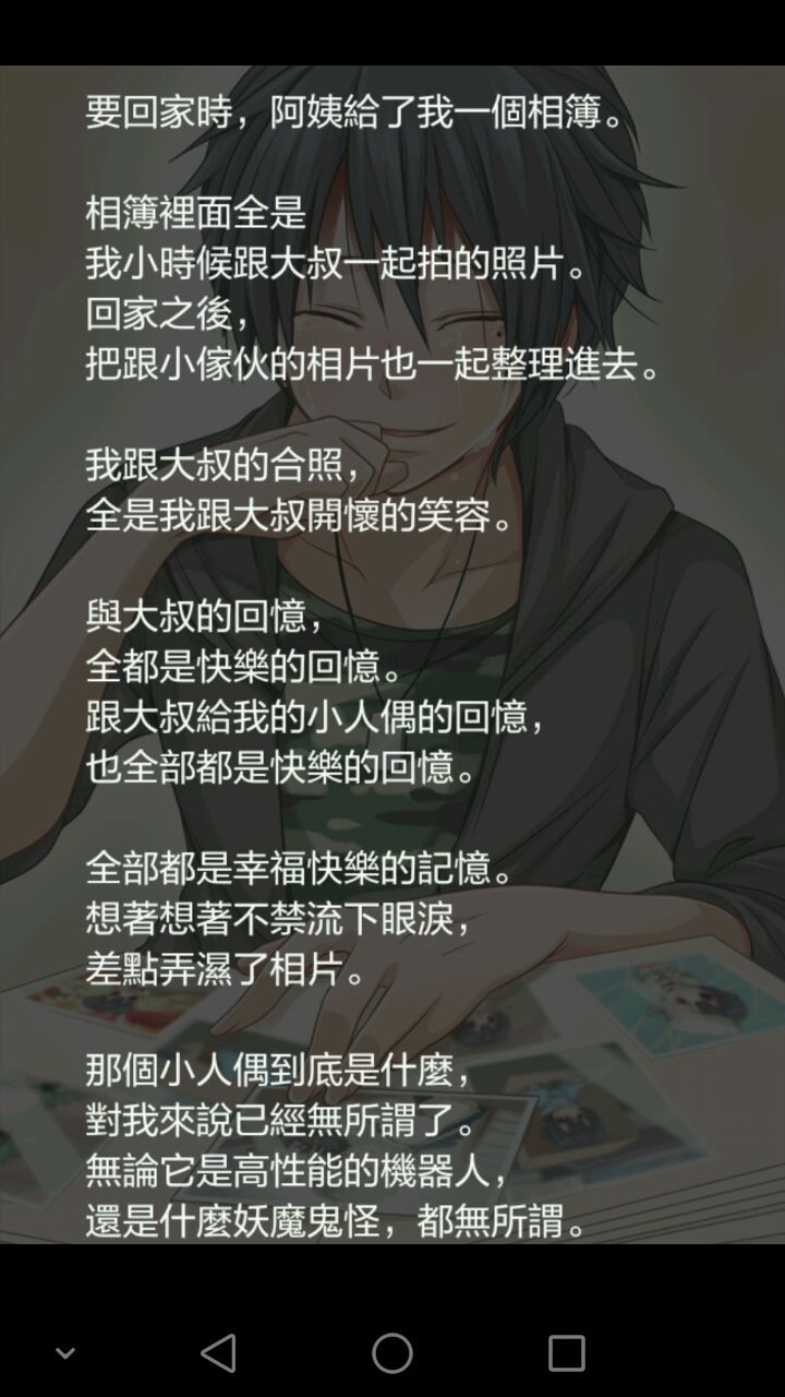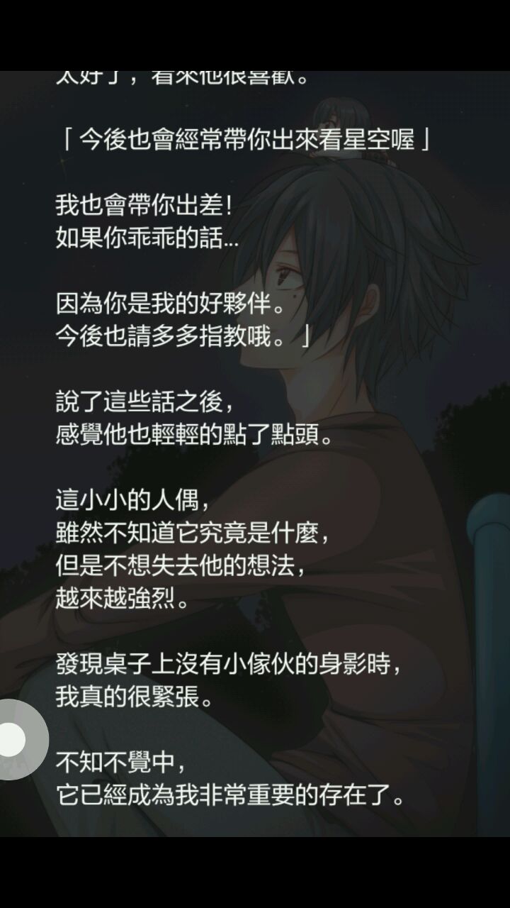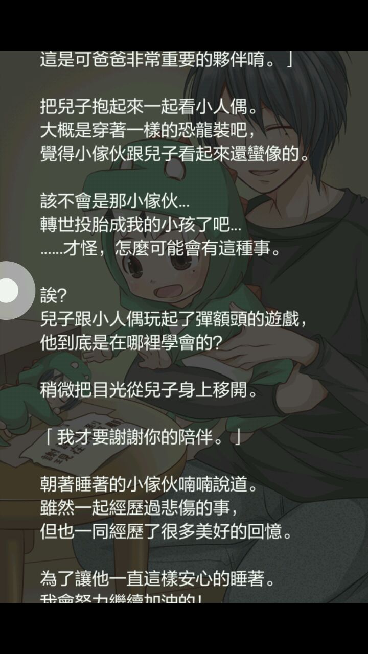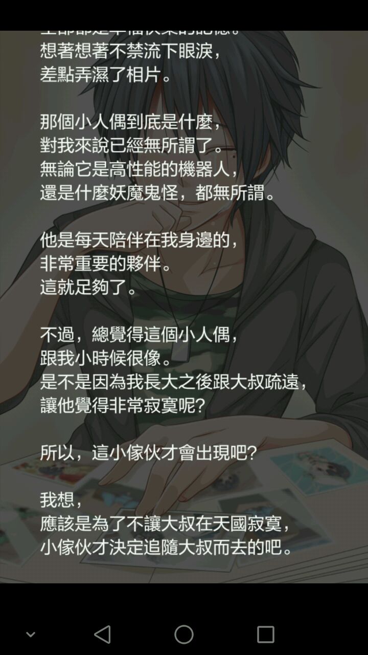 故事最开始主角小时候常去的玩具店大叔送了他一个玩偶,我最开始以为是乙女类放置play,后来发现主角是位小哥哥,我又以为应该是bl游戏,玩通关了才知道是个跟昭和店差不多的温情游,小玩偶还挺萌的。