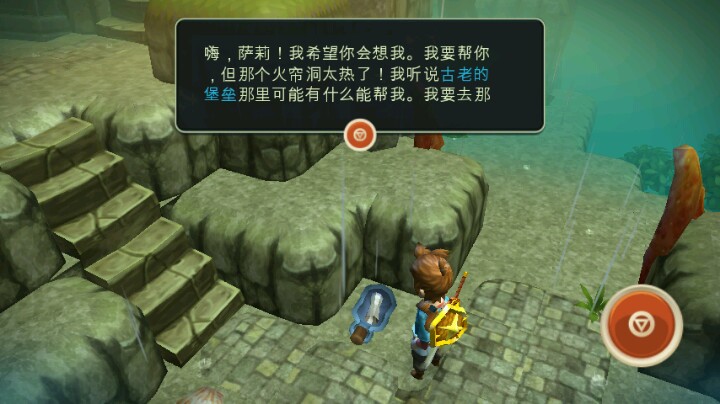 找到鱼人长老,触发剧情,王宫冰封的传说故事!按长老所说,到火帘洞取火魔法!火帘洞门口墙角瓶子里得知新岛屿——古老的城堡(图3)