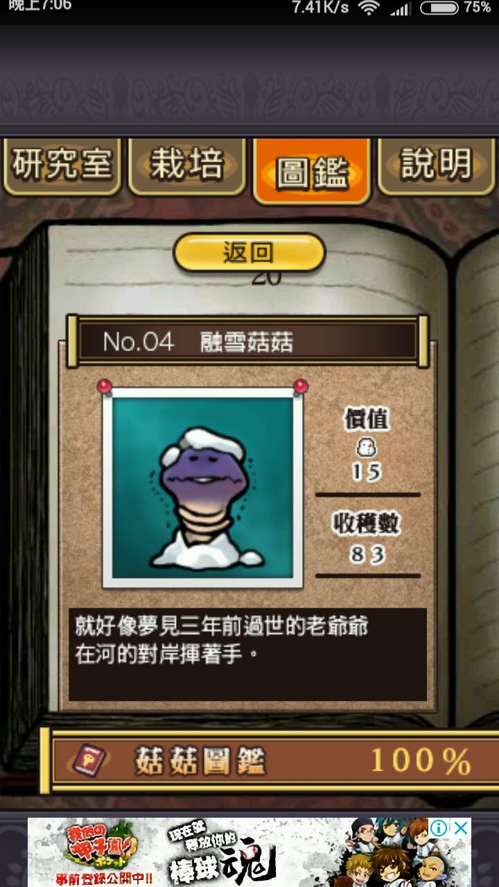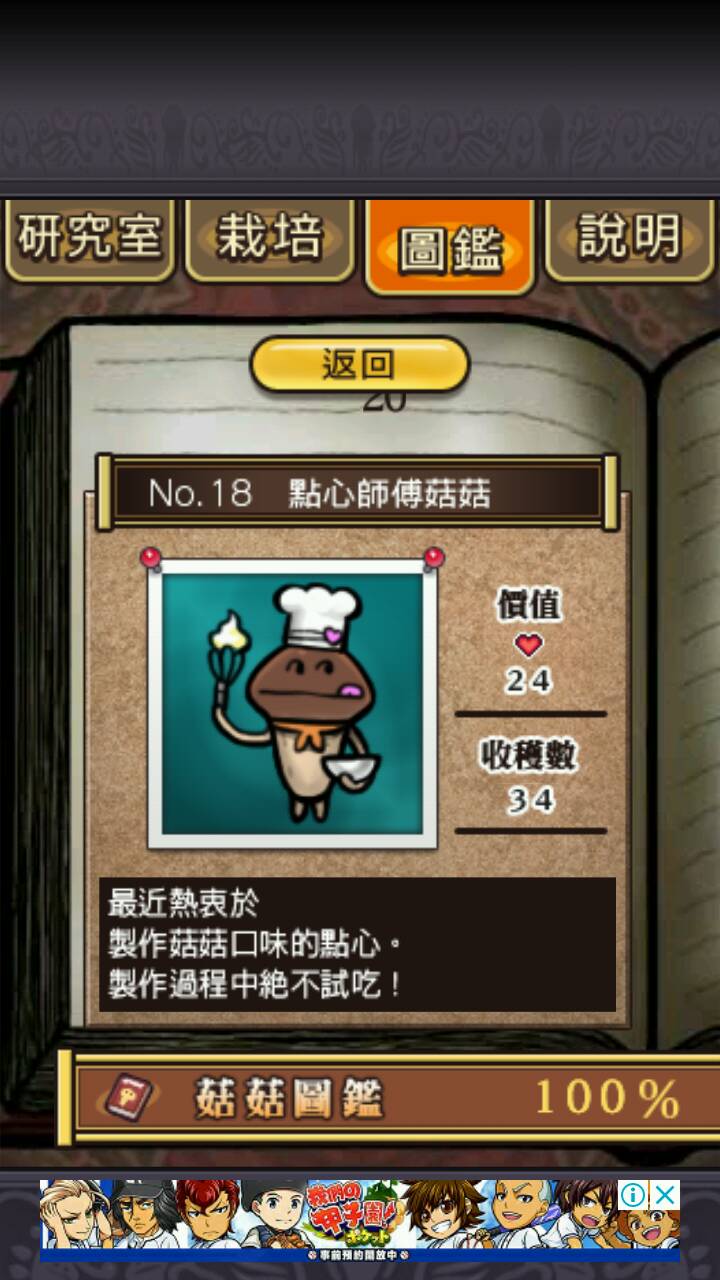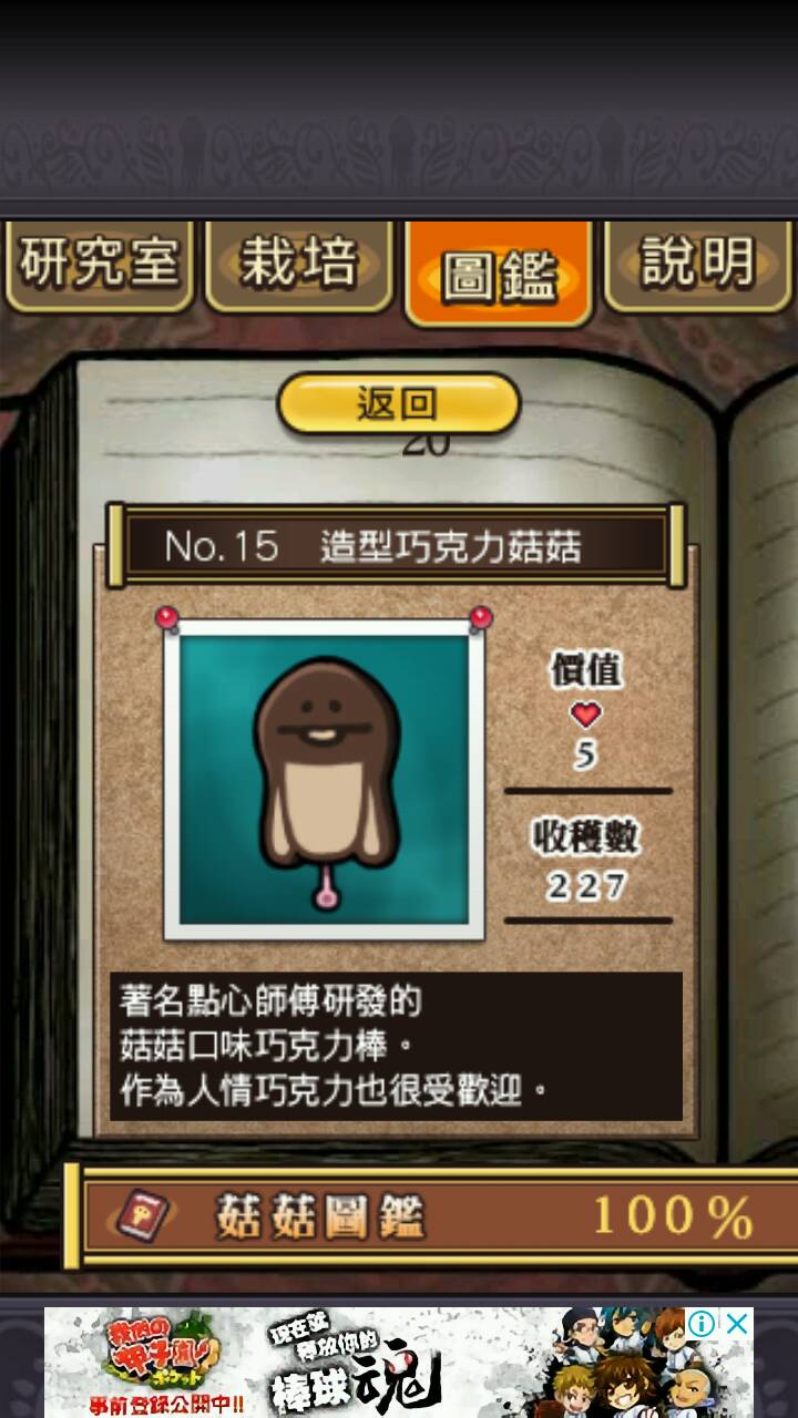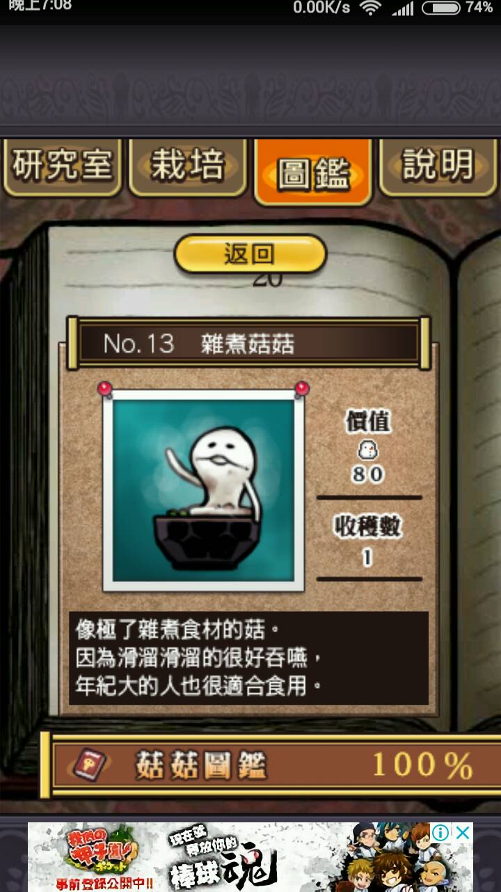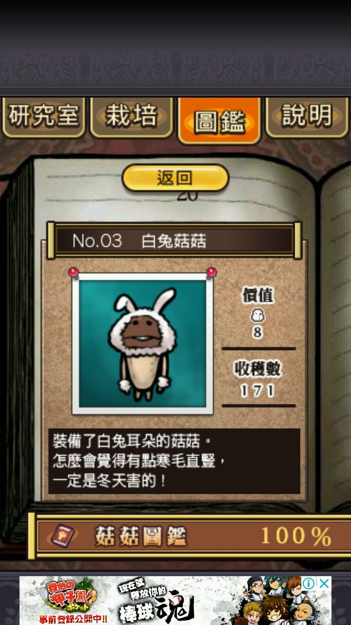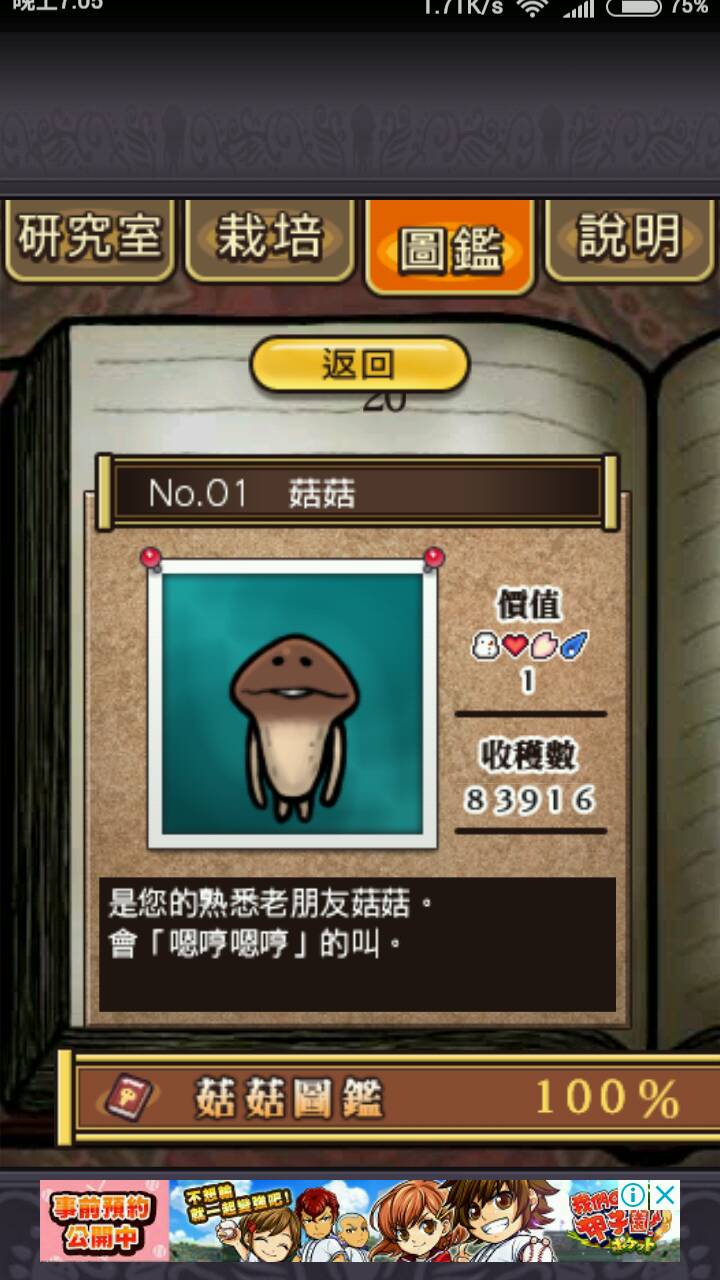 关于玩法介绍,使用药水加速菇菇的成長,等它長好了就滑的一下收集就成了,,,很简单,放置收集向游戏。菇菇有很多种,每收集的新的菇就很兴奋呢(*´∀`)