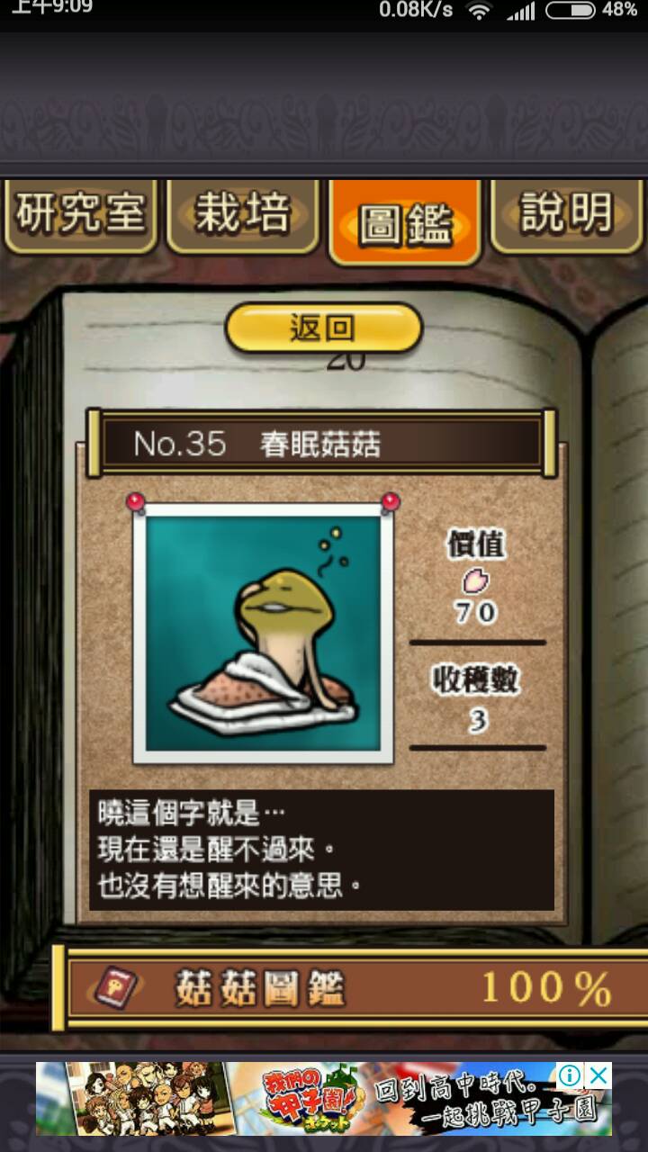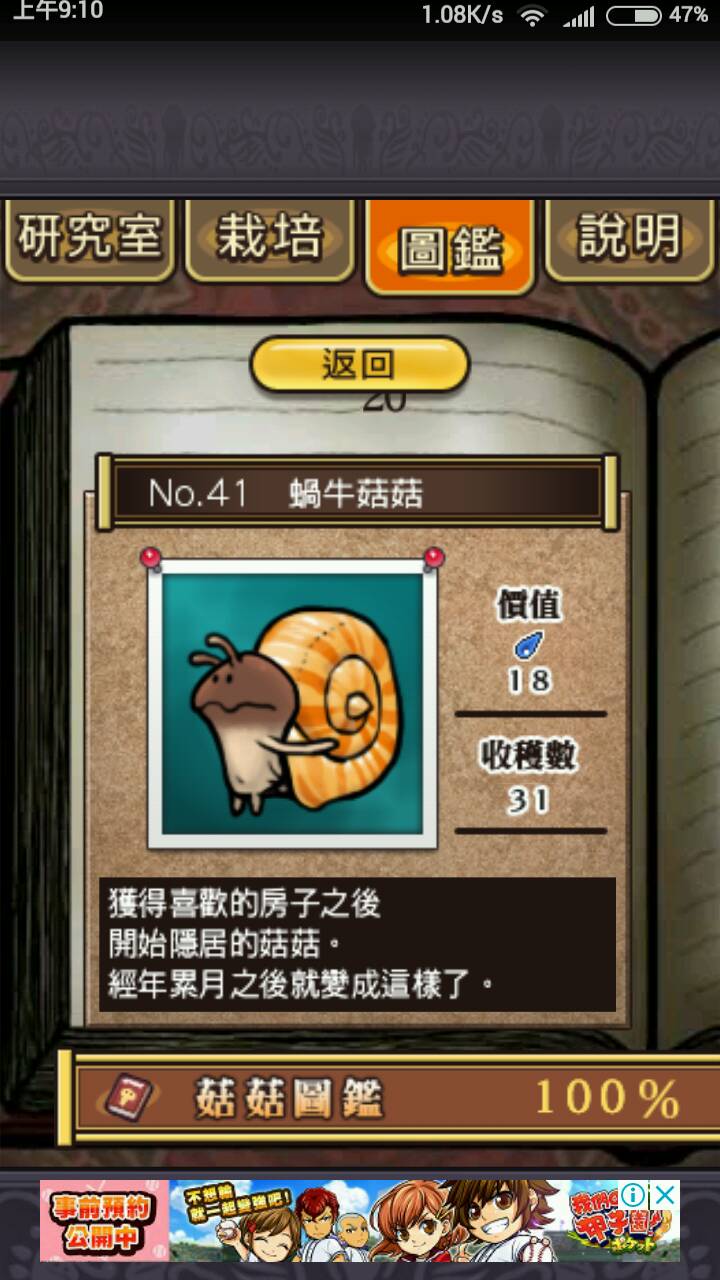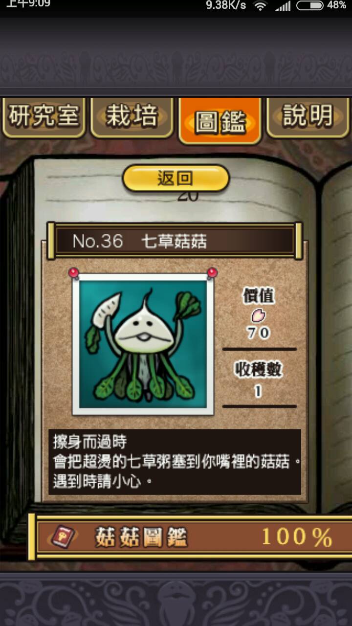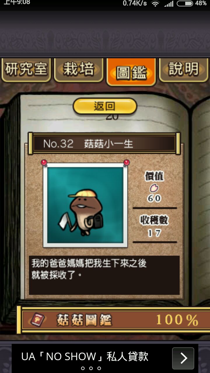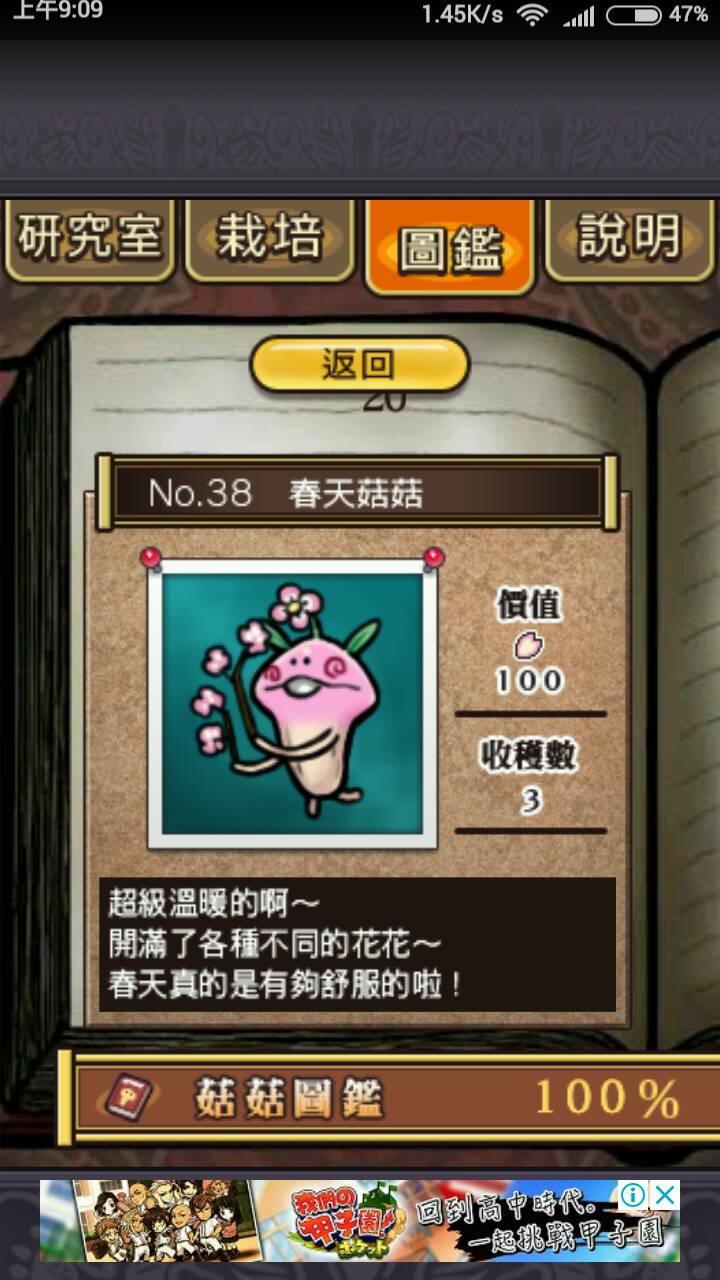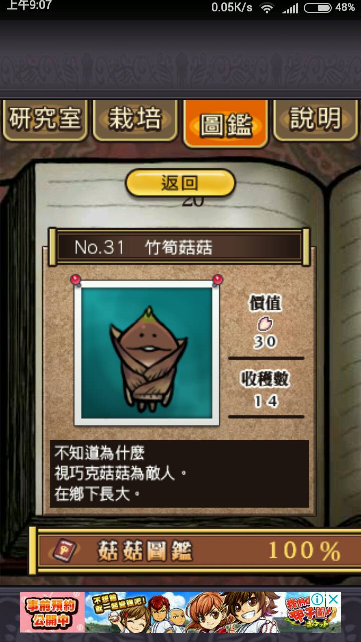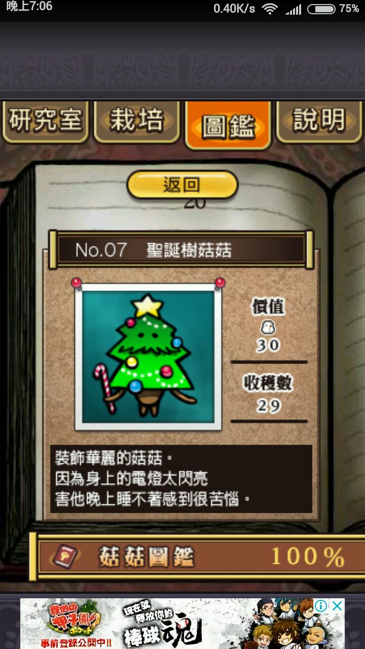 关于玩法介绍,使用药水加速菇菇的成長,等它長好了就滑的一下收集就成了,,,很简单,放置收集向游戏。菇菇有很多种,每收集的新的菇就很兴奋呢(*´∀`)