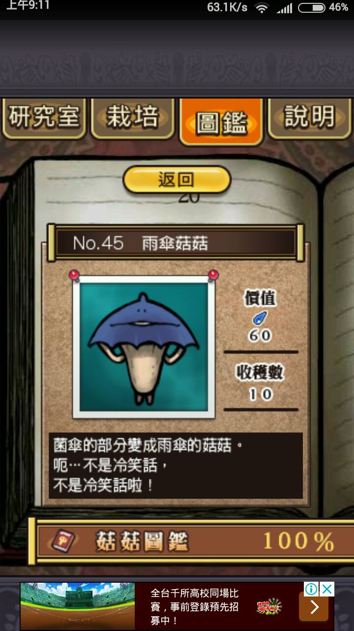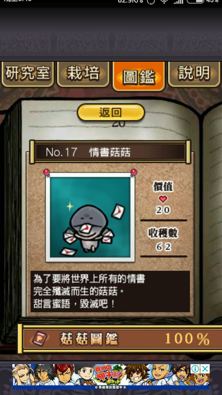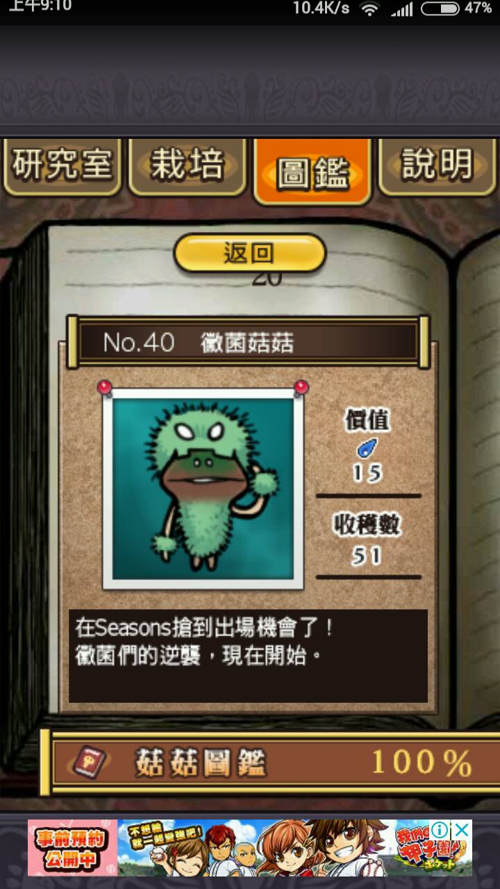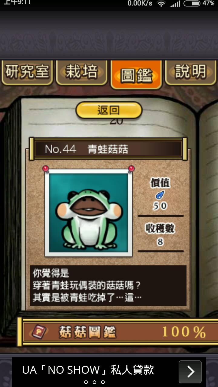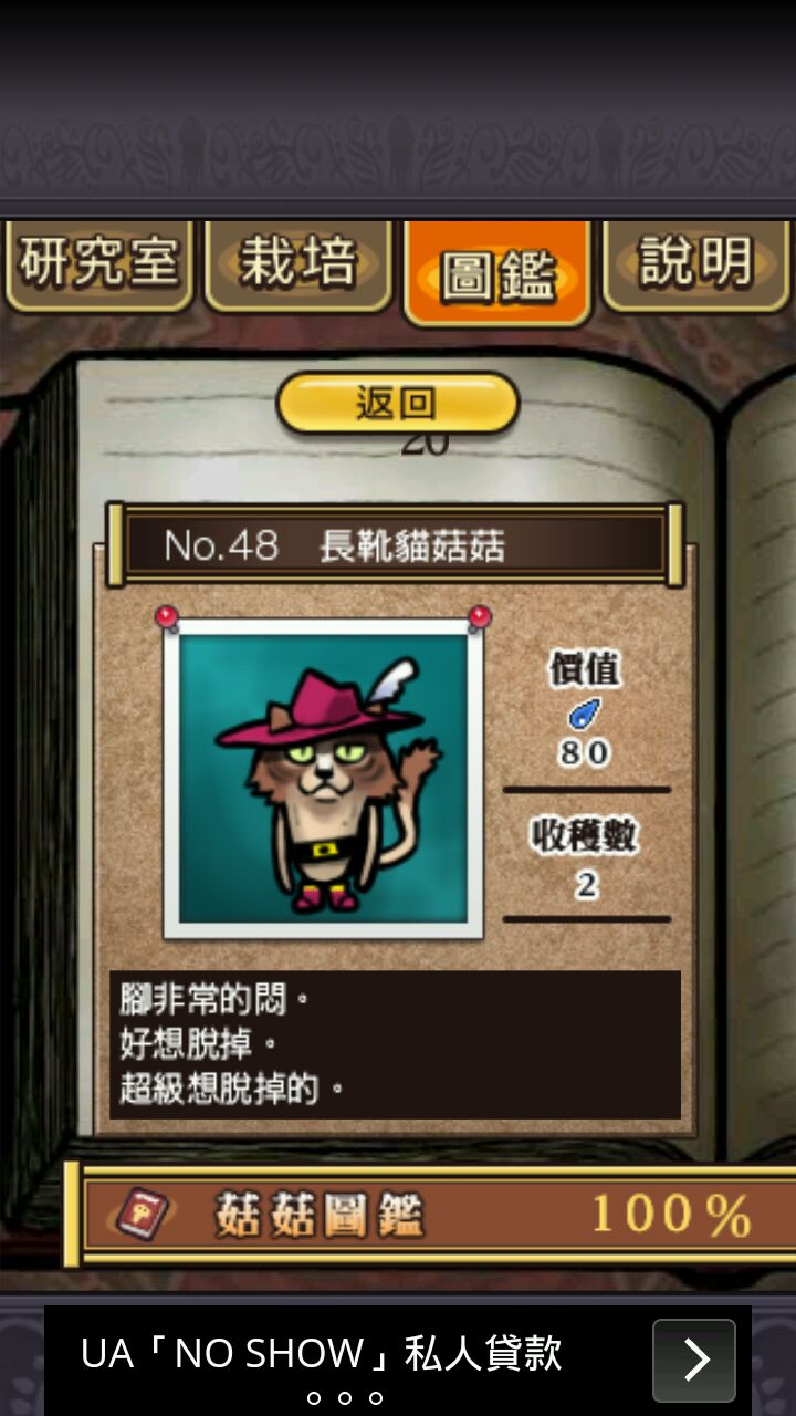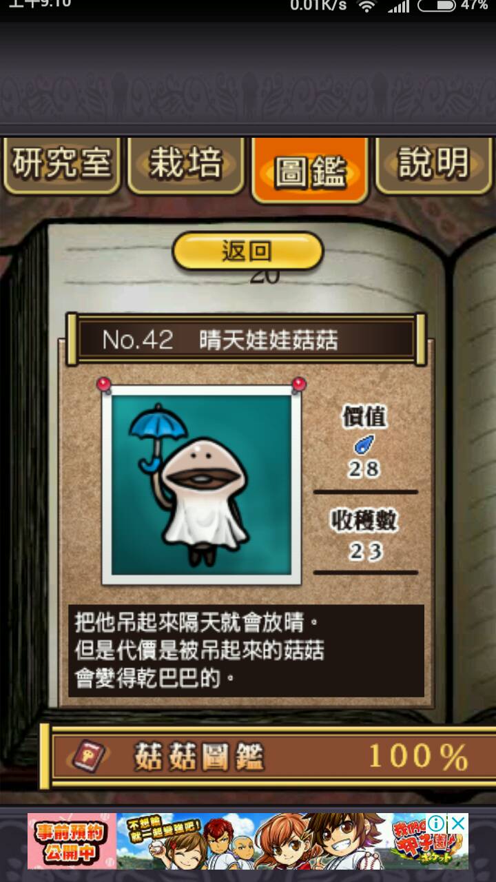 关于玩法介绍,使用药水加速菇菇的成長,等它長好了就滑的一下收集就成了,,,很简单,放置收集向游戏。菇菇有很多种,每收集的新的菇就很兴奋呢(*´∀`)