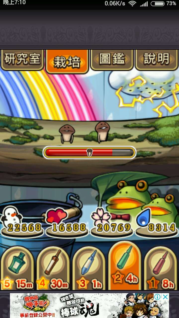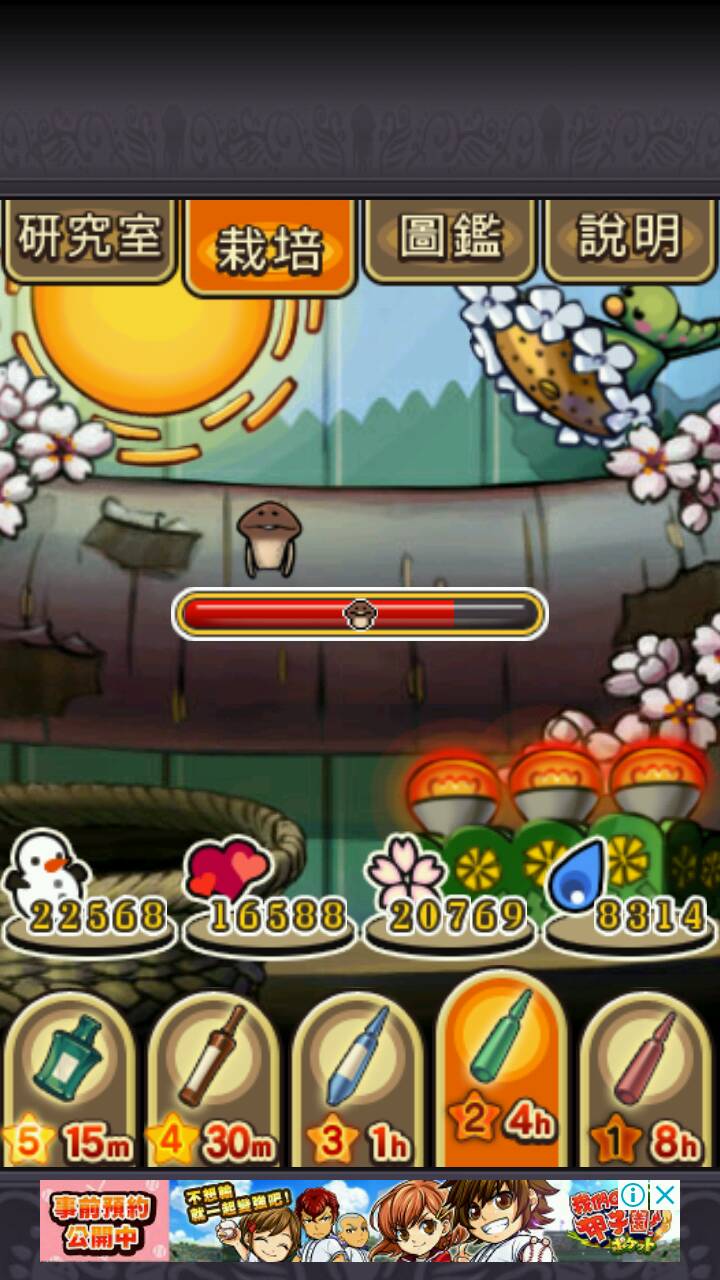 药水不用NP, 我记得有一作要買药水。。现在已经是免费的哟。药水分成5种,15和30分钟,1,4和8小时。用15分钟药水效果最佳,种出来的菇容易是稀有或新的菇,说实话放置play放愈久愈好嘛(啥??),所以我都用1小時