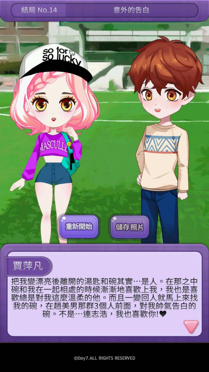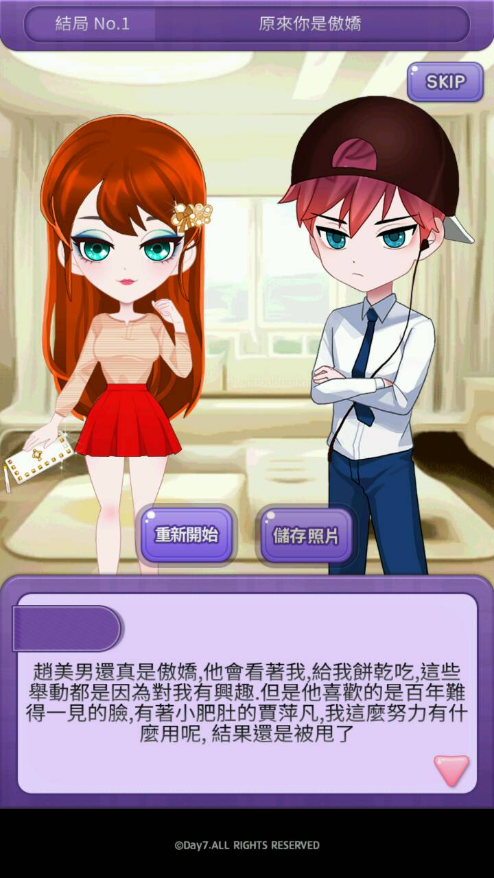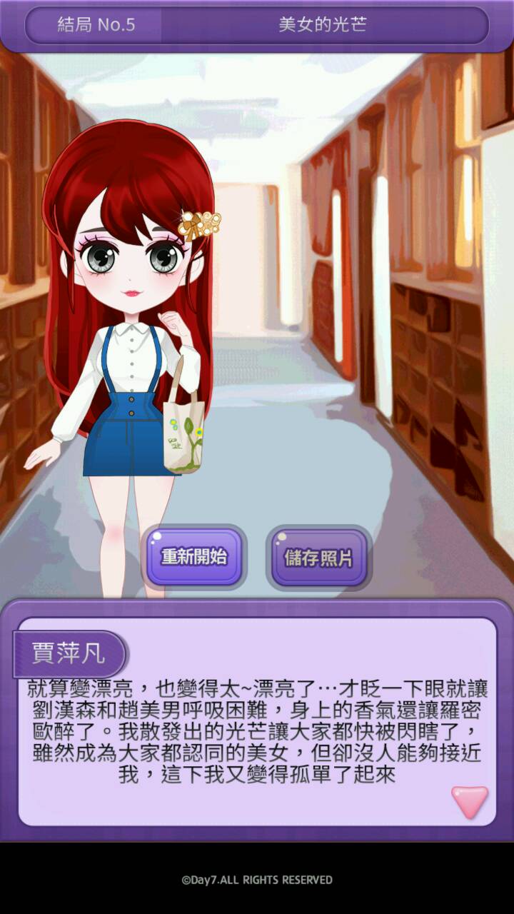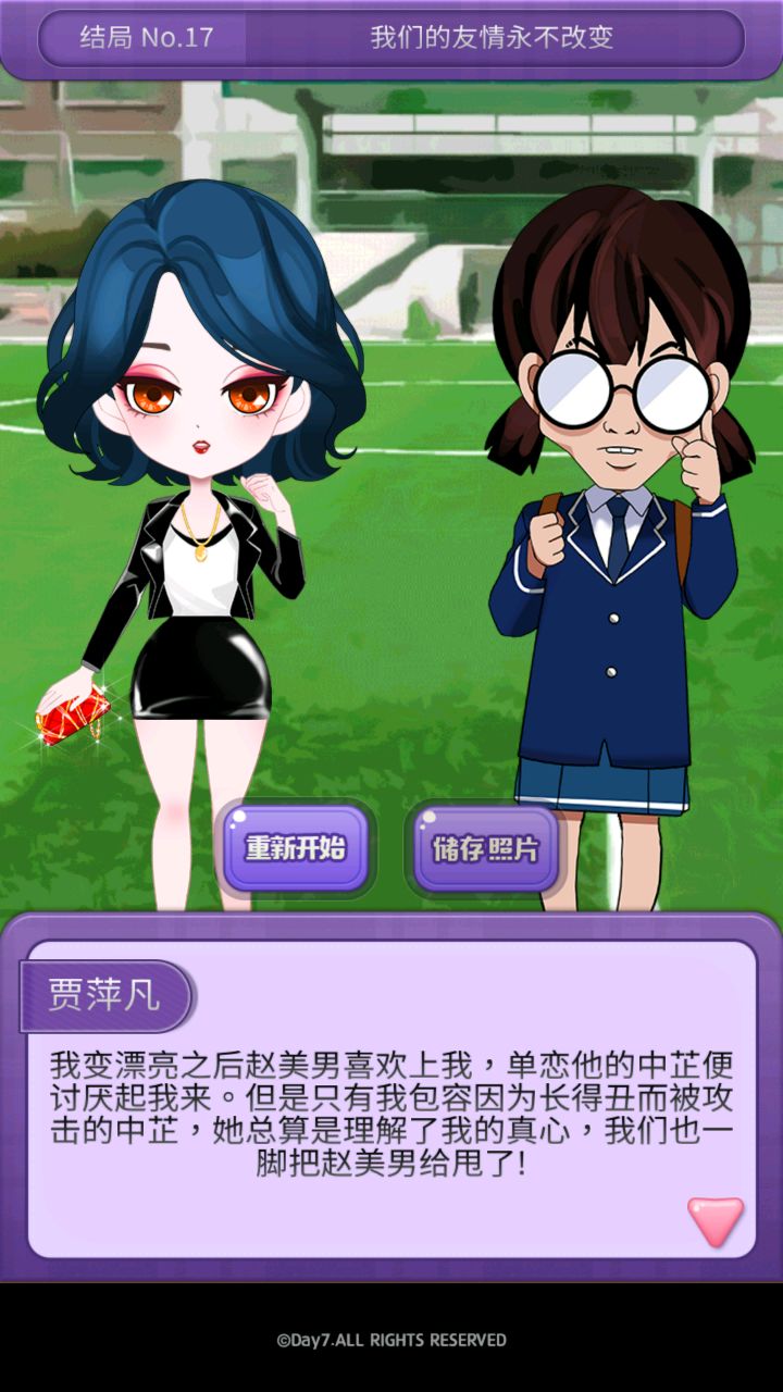 根据你选择的饰品发型等等可以解锁不同的结局!亮点就在于结局各种奇葩狗血233什么长得太漂亮大家看一眼就都窒息昏过去啦哈哈哈