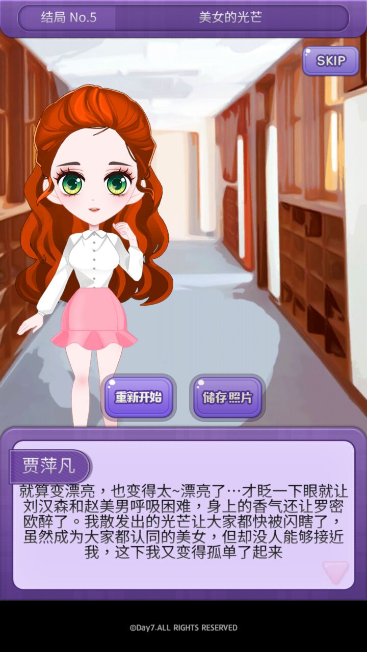 根据你选择的饰品发型等等可以解锁不同的结局!亮点就在于结局各种奇葩狗血233什么长得太漂亮大家看一眼就都窒息昏过去啦哈哈哈