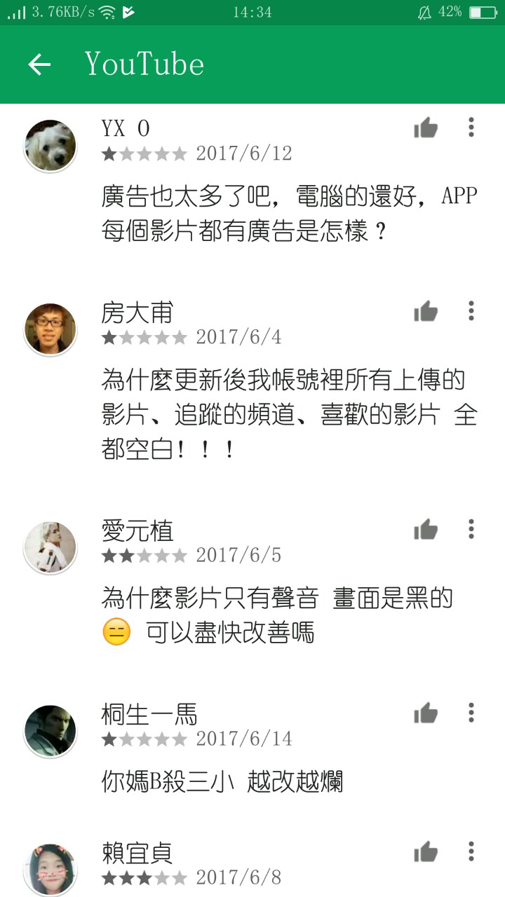 很明顯這是他手機的問題,還有你沒用過就別瞎黑Youtube